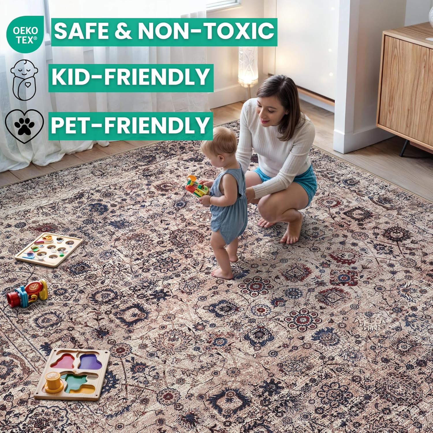 • EASY TO SETUP AND NON-SLIP: This one-piece machine washable rug with non-slip backing attached eliminates any additional setup. Simply unfold and lay flat upon arrival in the desired space. Non-slip backing prevents the rug from moving or sliding without the need for additional rug pad or grippers.