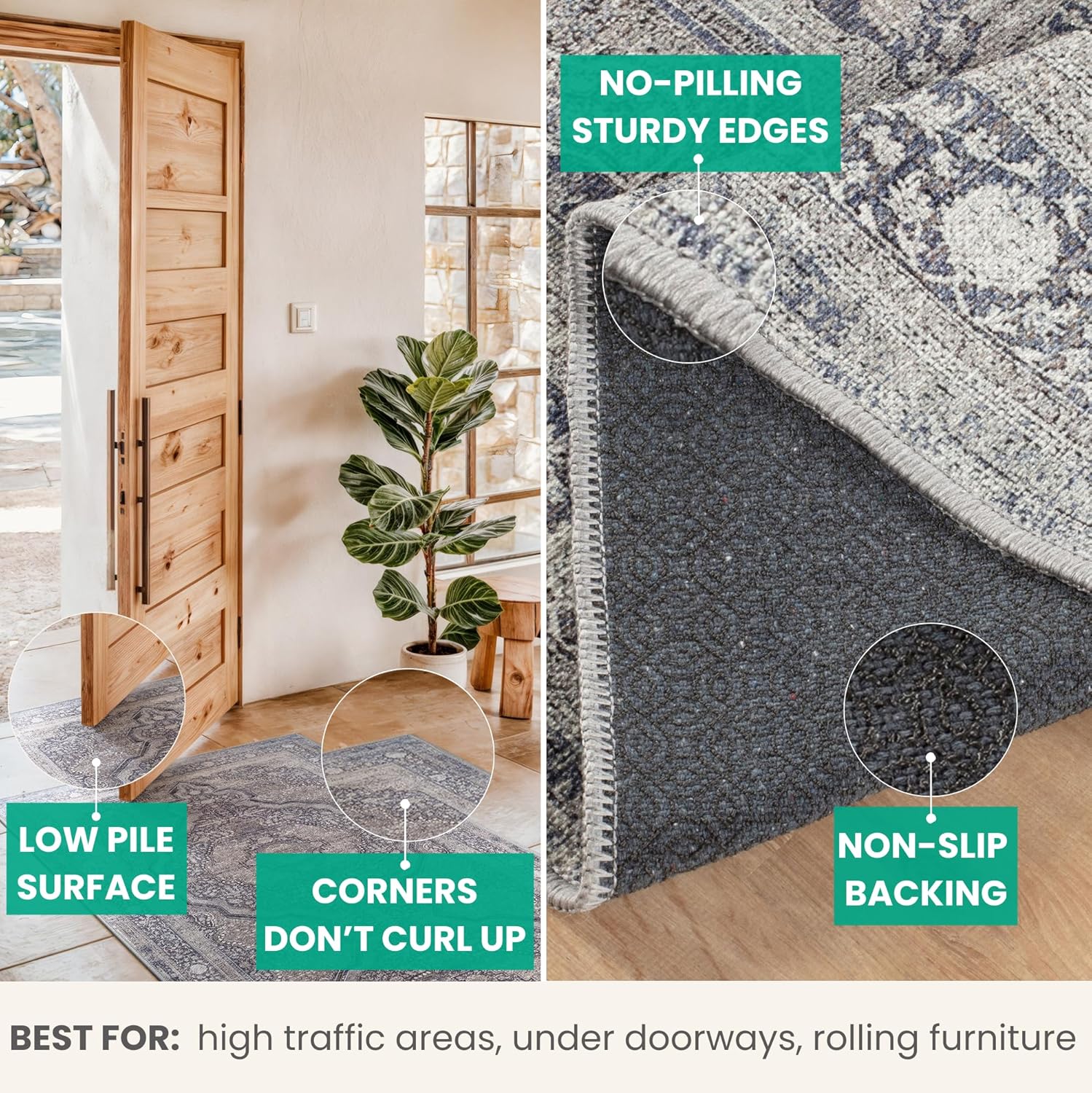 • EASY TO SETUP AND NON-SLIP: This one-piece machine washable rug with non-slip backing attached eliminates any additional setup. Simply unfold and lay flat upon arrival in the desired space. Non-slip backing prevents the rug from moving or sliding without the need for additional rug pad or grippers.