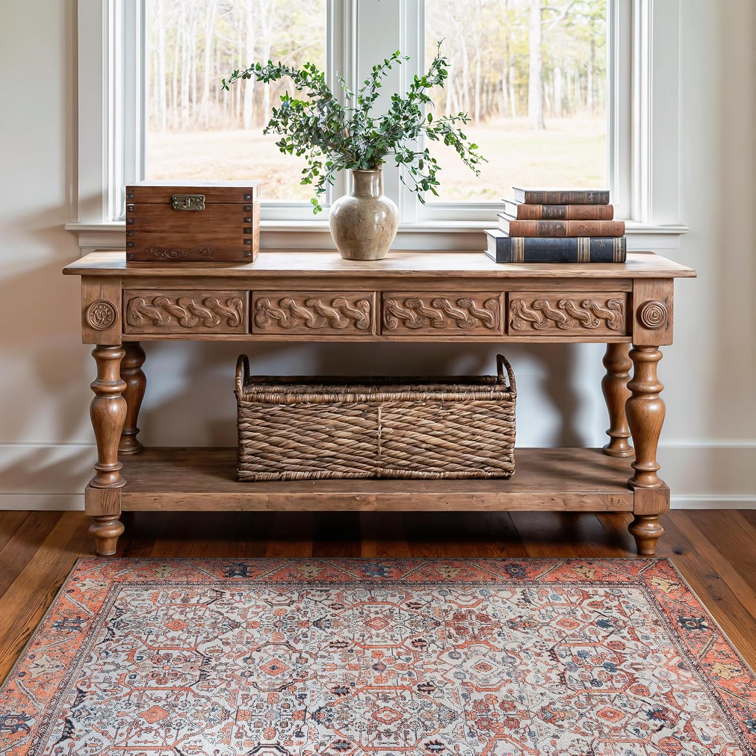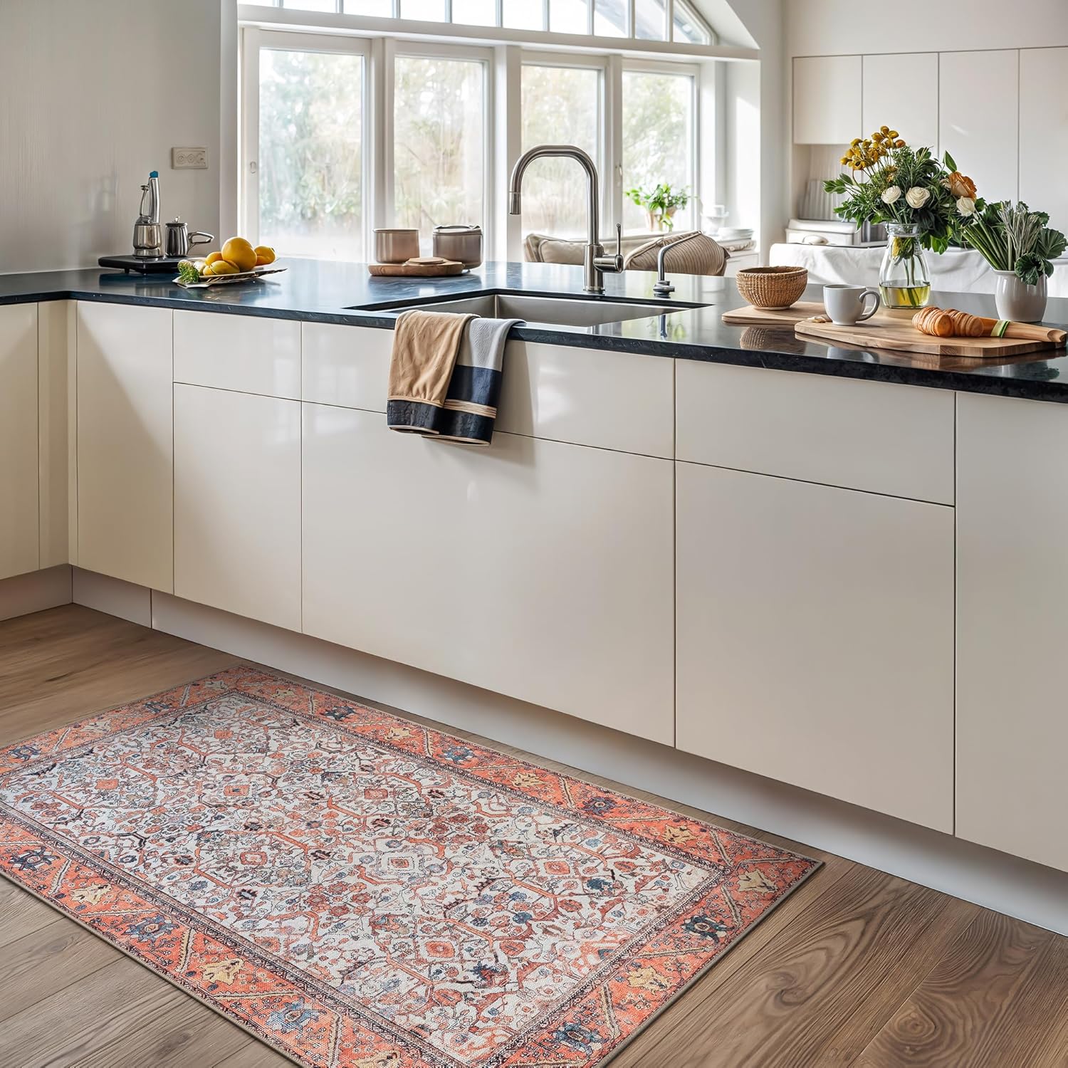 Bloom Rugs Washable Non-Slip 3' x 5' Rug - Orange Traditional Bordered Area Rug for Living Room, Bedroom, Dining Room, and Kitchen - Exact Size: 3' x 5'