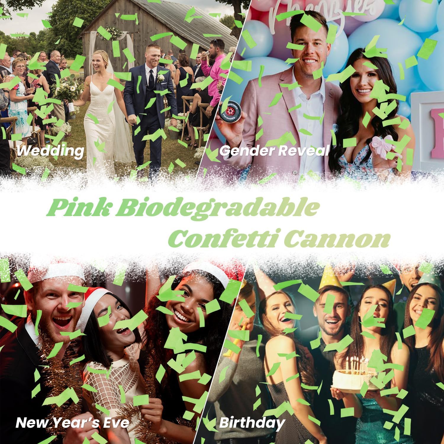 • 【Biodegradable Confetti Cannon】These Green confetti poppers are Biodegradable which means environmentally friendly confetti poppers! Great for Bachelorette Party/ Bridal Shower/ Wedding Anniversary / Engagement Party/Valentine’s Day/Graduation Party/ Birthday Celebration/ Christmas Party or New Years Celebration Party, all events you want to celebrate.