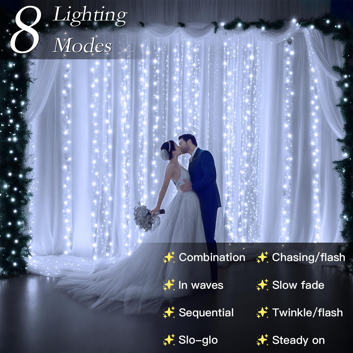 • Connectable Up to 5 Sets – Plug & Play Easily link up to 5 sets for stunning large scale setups, perfect for covering wedding backdrops, stretching across an entire dorm room wall, or transforming your living room into a cozy holiday haven. Just plug in and let the magic happen