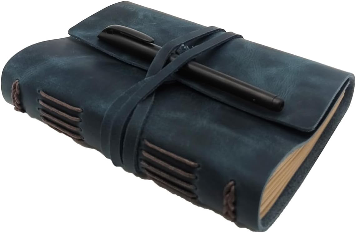• BEST GENUINE LEATHER JOURNAL CRAFTSMANSHIP – Crafted with genuine leather, this leather bound journal offers a soft touch exterior with natural, distressed look that’s truly exclusive blue notebook journal