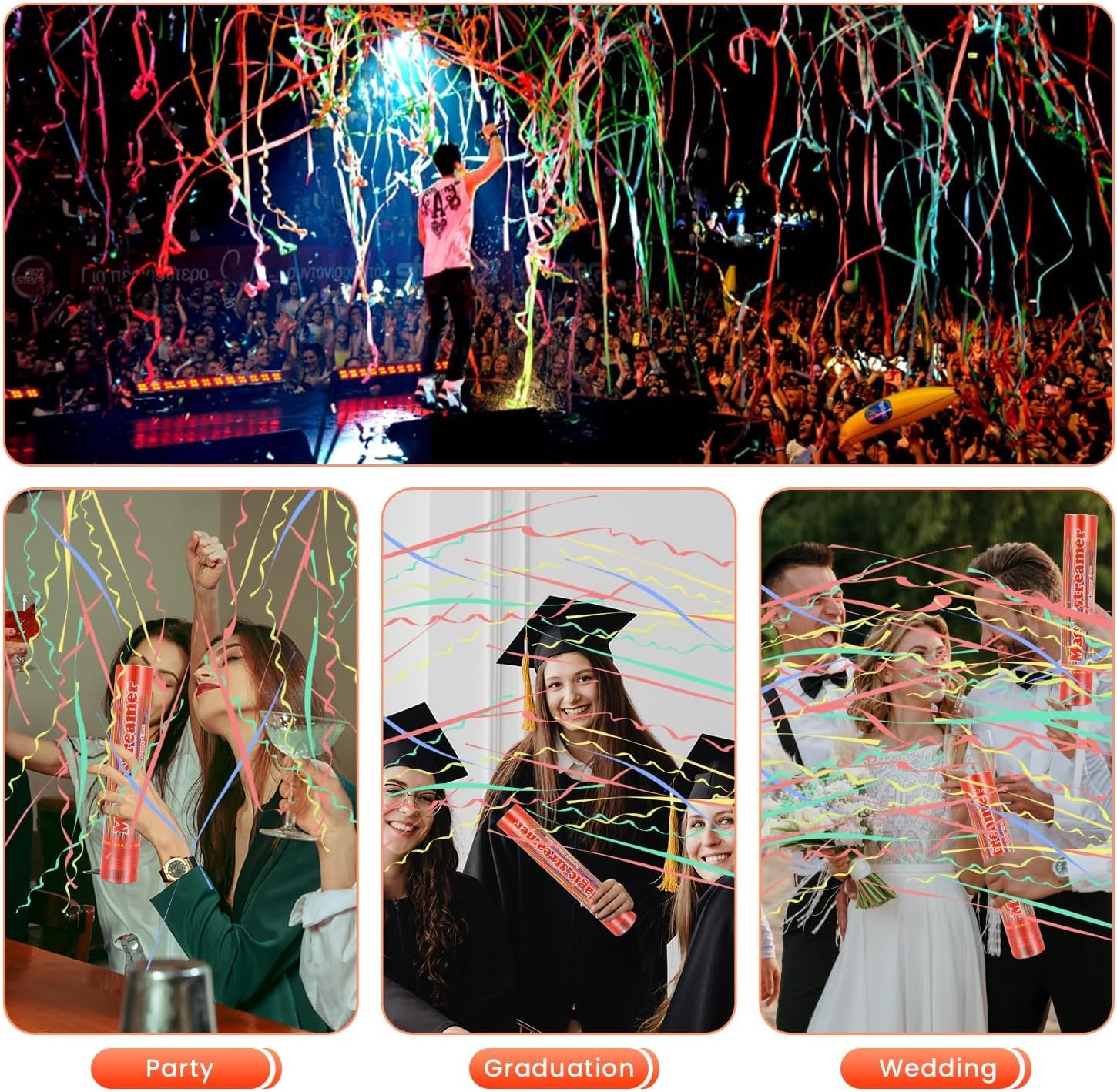 • 【Multiple Occasions Party Poppers】party streamer poppers confetti shooters work well indoors and outdoors.Poppers streamer shooters are great for adding fun, festive energy to any party or gathering. Confetti cannon is perfect for any occasions, graduation, wedding, birthdays party, Opening, holidays, Eve days and christmas or play a prank.