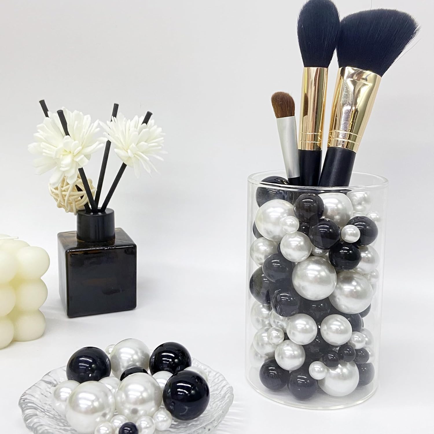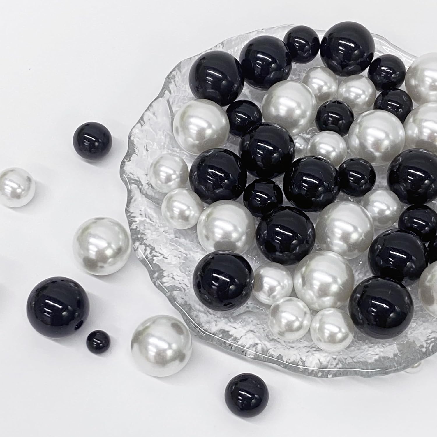 150Pcs Black&White Polished No Hole Faux Pearl Beads for Vase Filling Decorations, Plastic Pearls Vase Fillers, Table Scatters, Wedding Centerpiece, Home Decor, 8/14/20 mm