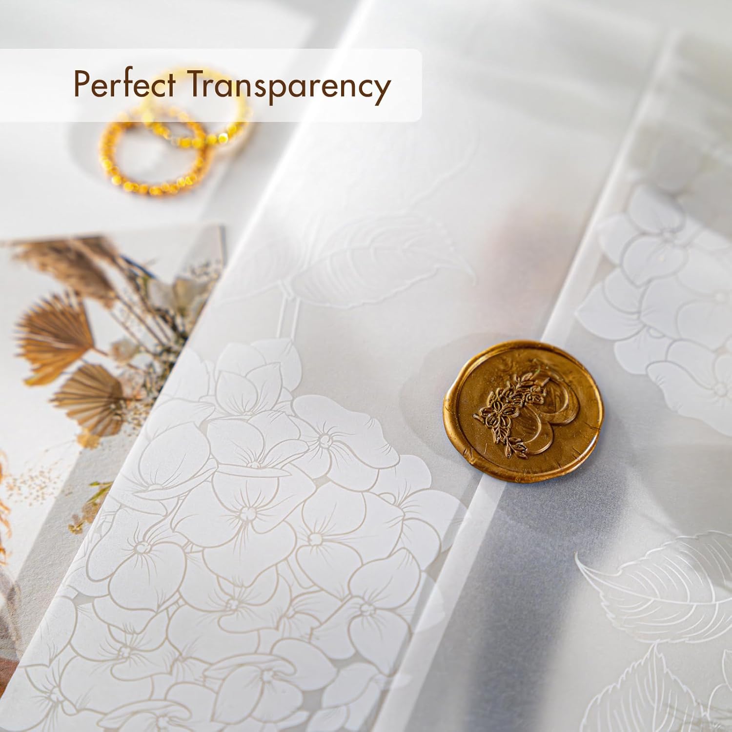 50 Pack Pre-Folded Vellum Jackets for 5x7 Invitations,AZAZA Elegant Translucent Invitation Sleeves,115GSM Vellum Jackets 5x7, Wedding Invitation Accessories, for Weddings Birthdays, Hydrangea Floral