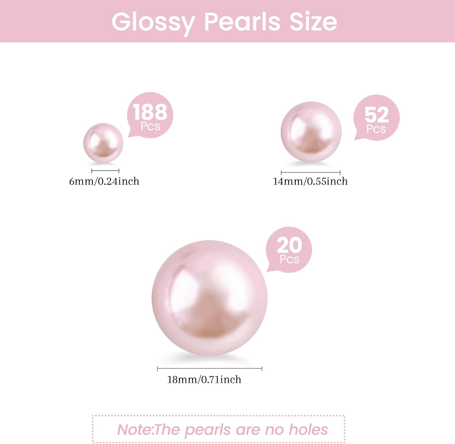 260Pcs Pink Glossy Beads for Centerpiece Decor, Artifical Pearls Vase Filler, Makeup Brush Beads, No Hole Round Pearl Beads for Wedding Birthday Christmas Party Home Decor(18mm 14mm 6mm)