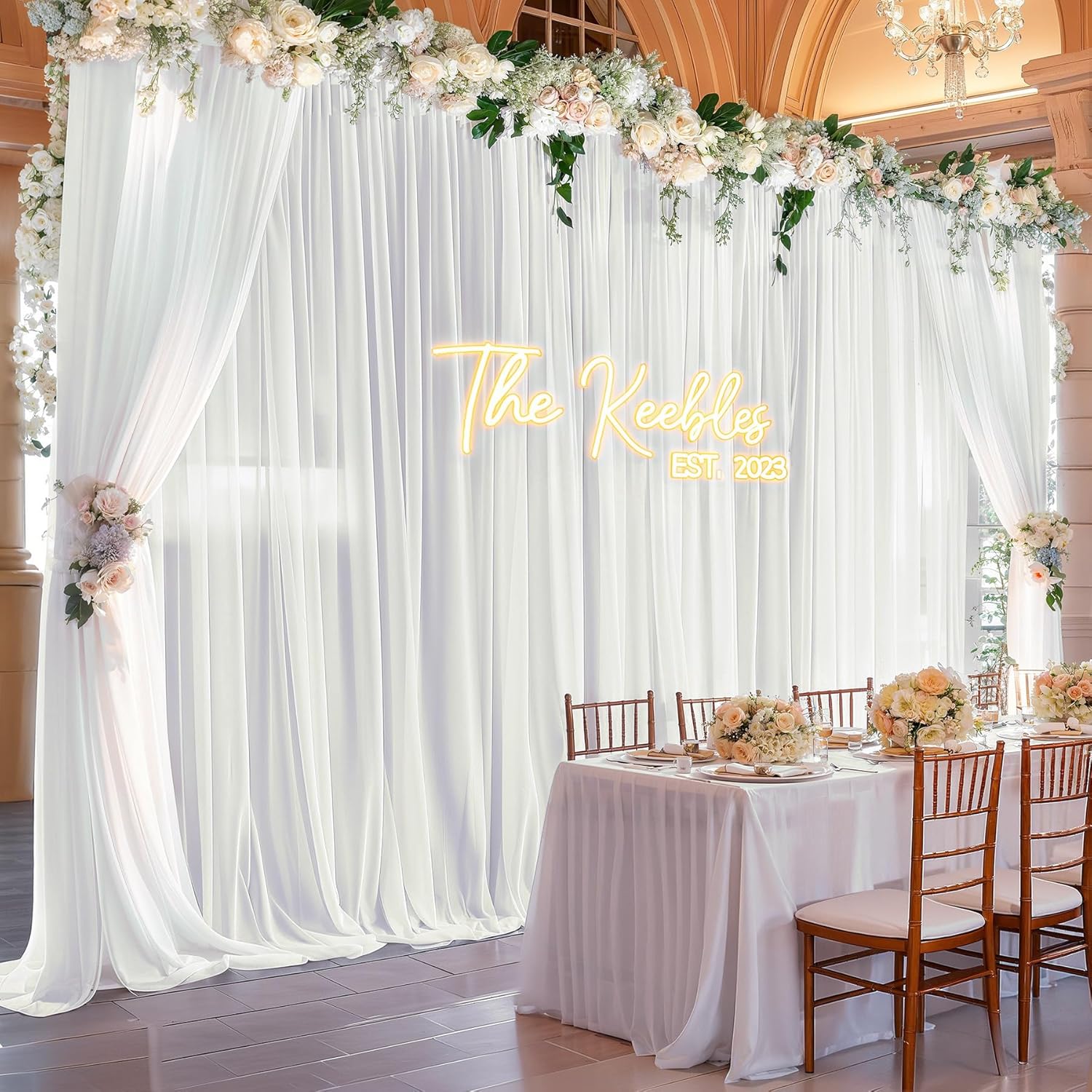 • Elegant Draping Fabric - The beige backdrop drapes are made of premium quality glossy chiffon fabric,soft and durable. The sheerness is perfect for putting curtain lights behind them. Easy to get these sheer backdrop curtains crease and wrinkle free