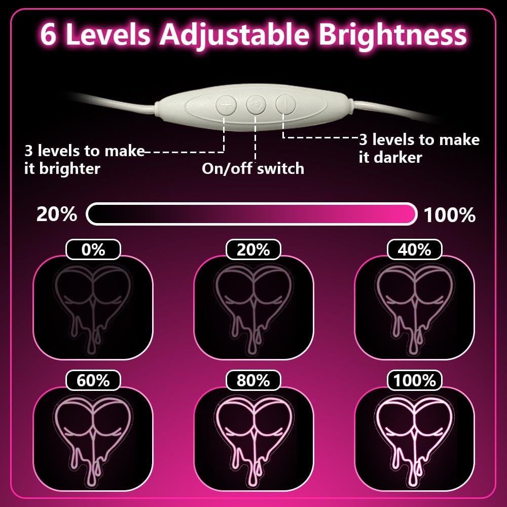 • 【Flexible Installation】This pink sexy neon sign is USB powered, allowing for easy setup and portability. There are two pre-drilled holes in the back panel, you can easily hang this party neon on the wall with hooks. You can hang it on the wall or any other places to decorate your room.