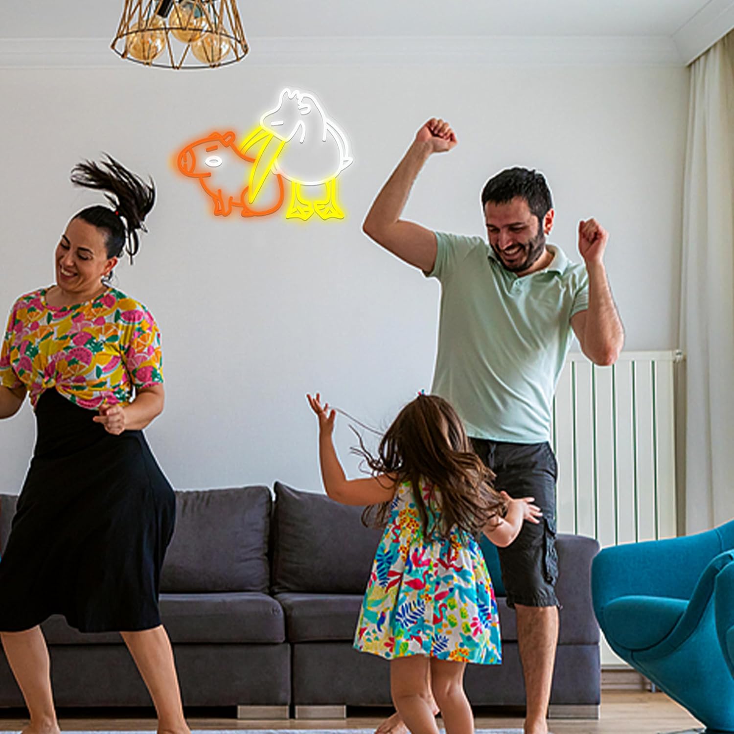 LISIGNVE Capybara Pelican Neon Sign for Wall Decor Funny Capybara Led Neon Light Sign Pelican Neon Light for Children's Room Kindergarten Bedroom Zoo Art Wall Decor(16.5”*12.6”)