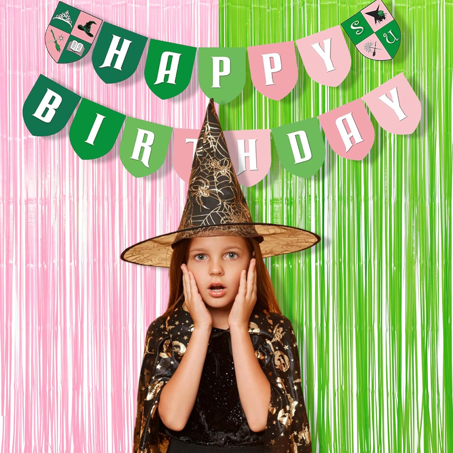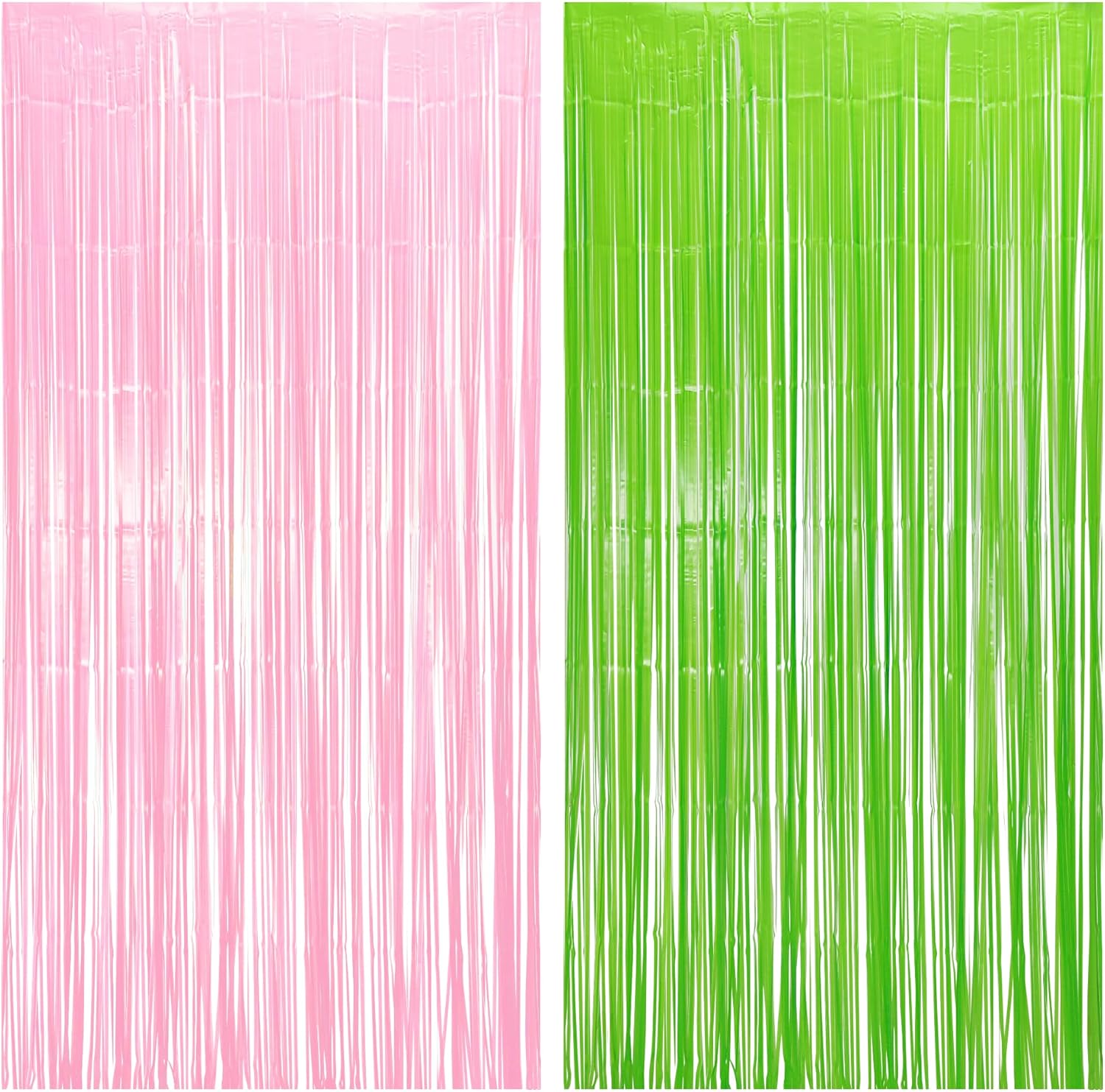 BRAVESHINE Party Streamers Backdrop - 2 Pack 3.2ft X 8.2ft Tinsel Foil Fringe Curtains for Halloween/Boo/Fairy/Girl Birthdays/Wizard/Baby Shower/Photos Booths/Pink and Green Party Decorations
