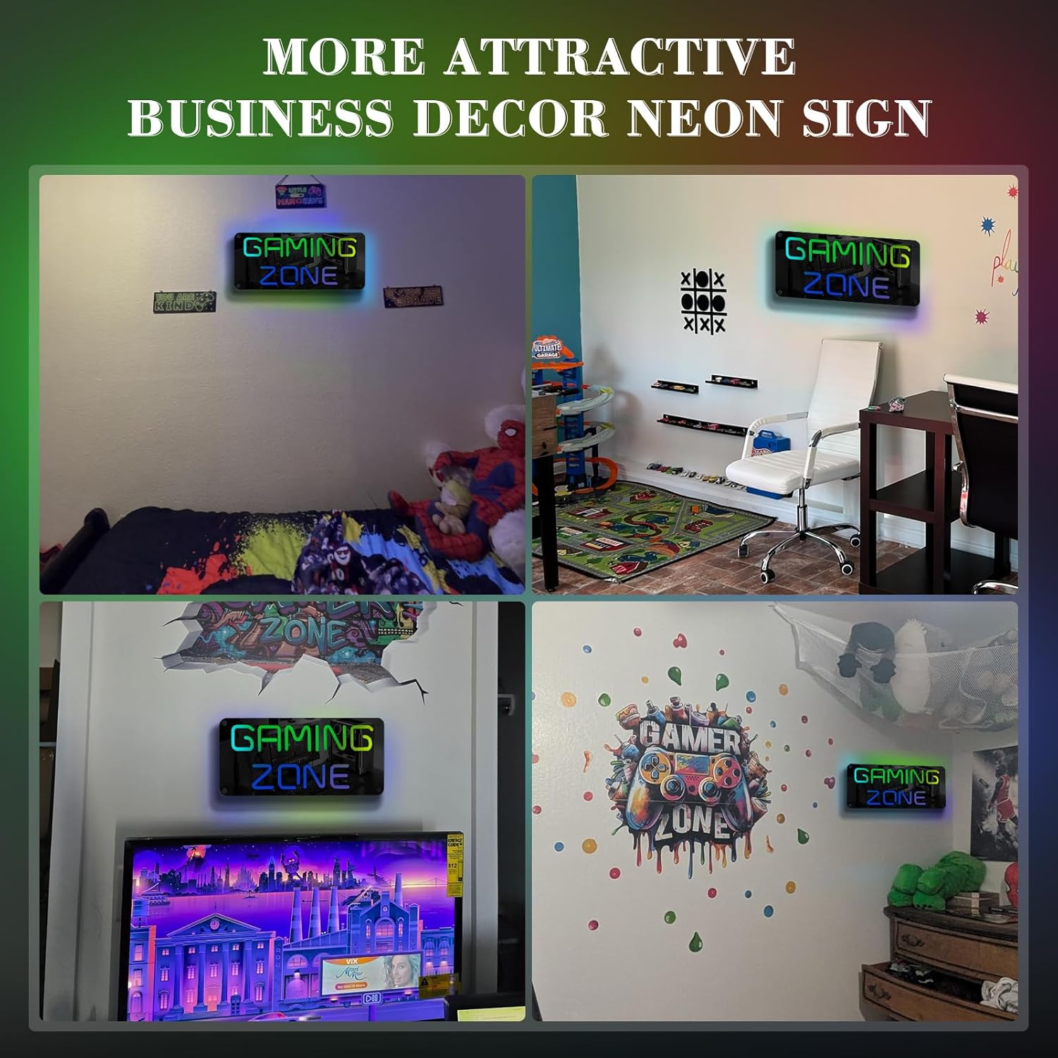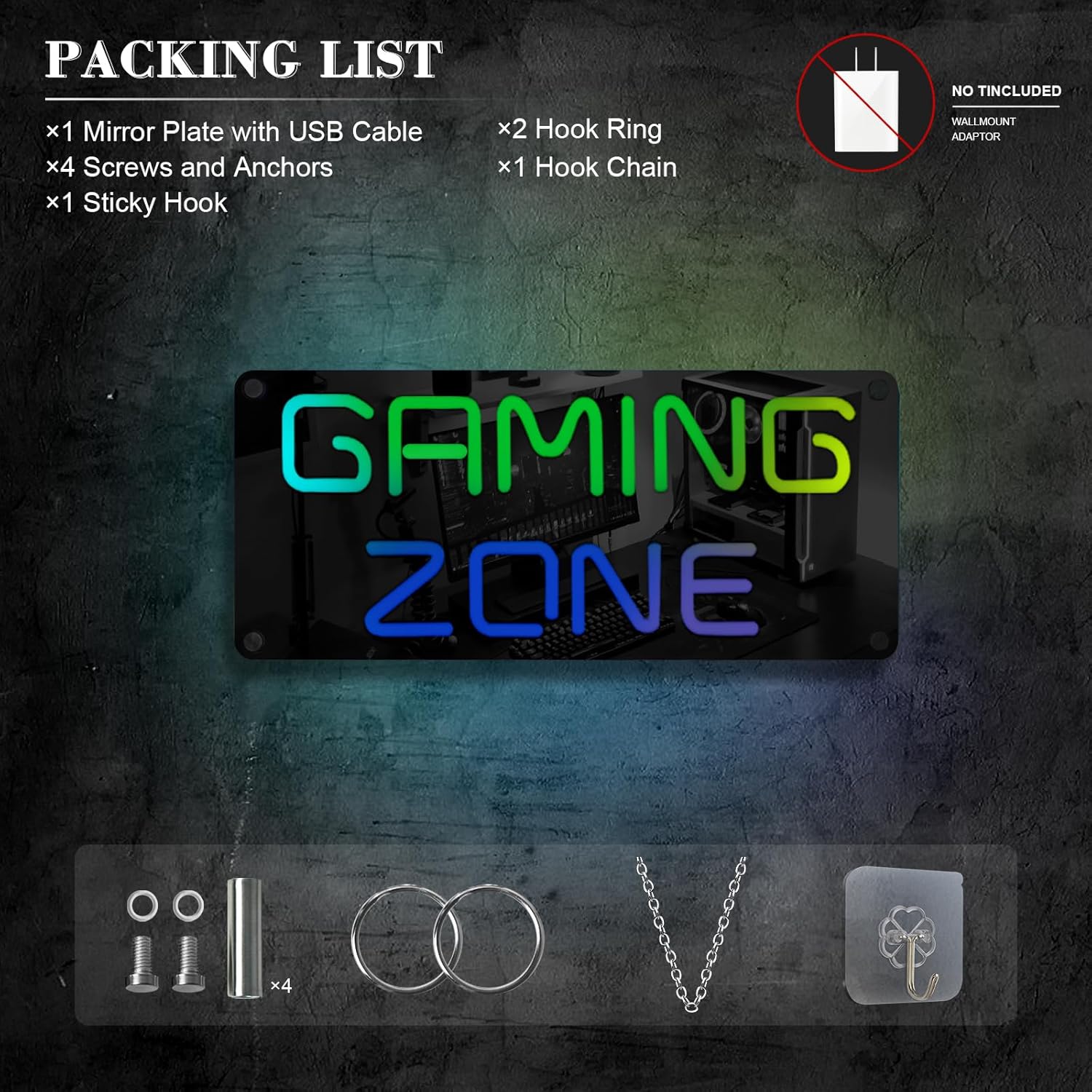 Ineonlife Game Zone Neon Sign Mirrored Colorful LED Lights for Gaming Room Decor Light Up Signs for Teen Boy Bedroom Decoration Best Gift for Kids 14.57 x 6.3 inches USB Powerd