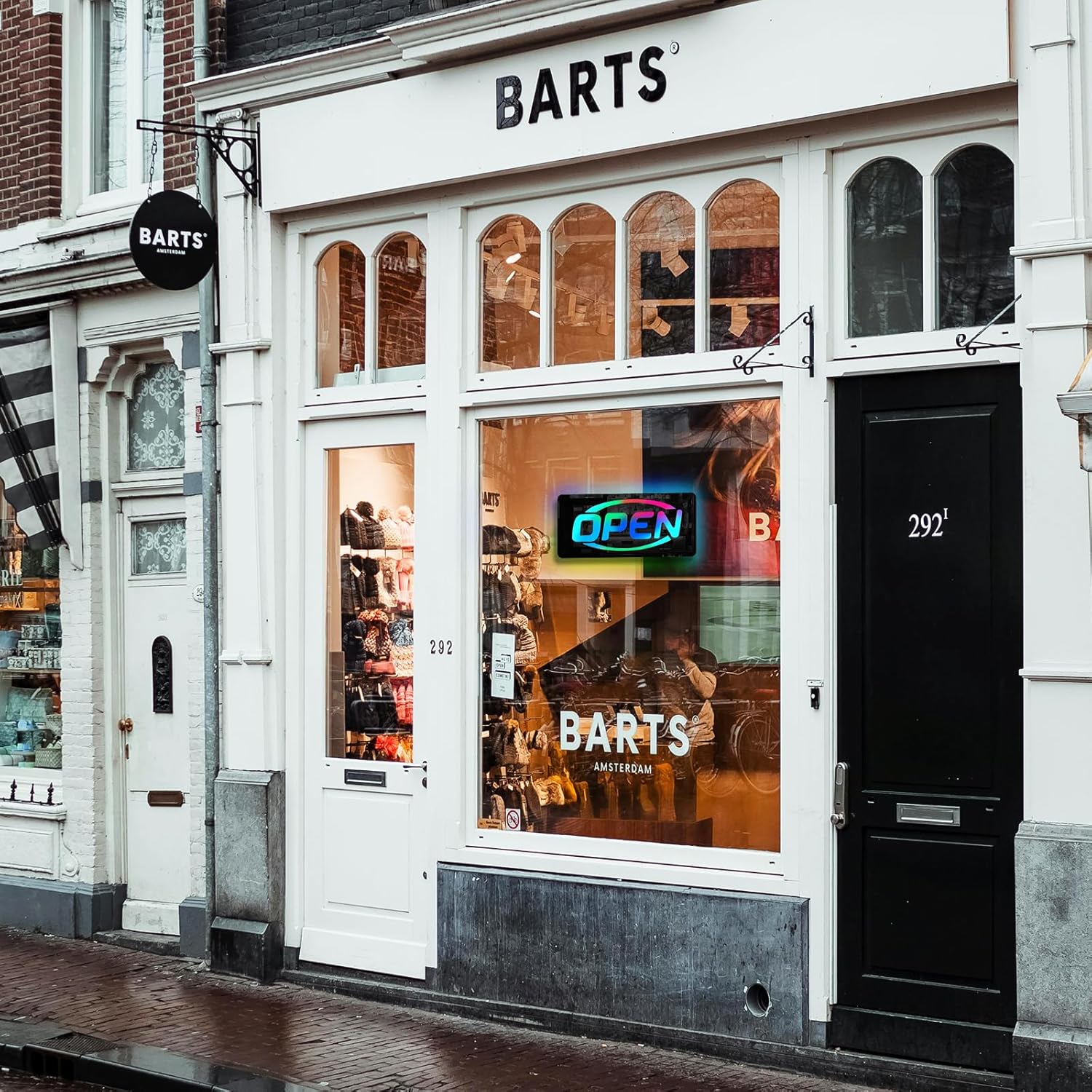 • Eye-catching sign:This Open neon sign is a unique storefront decoration sign. It is composed of mirror acrylic board. It has excellent long-term effects and high-brightness light effects, which will definitely catch the attention of pedestrians. Suitable for your business shop store bar cafe salon hotel wall decor