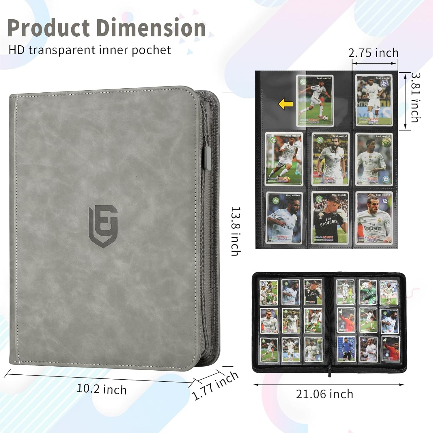 • DETAILED DESIGN:The card binder is made of premium PU leather, water or raindrops will not penetrate, different colors of the trading card binder with different colors of the zip, to meet your personalised needs. Side card pocket prevents cards from spilling out and protects your cards from fading and staining