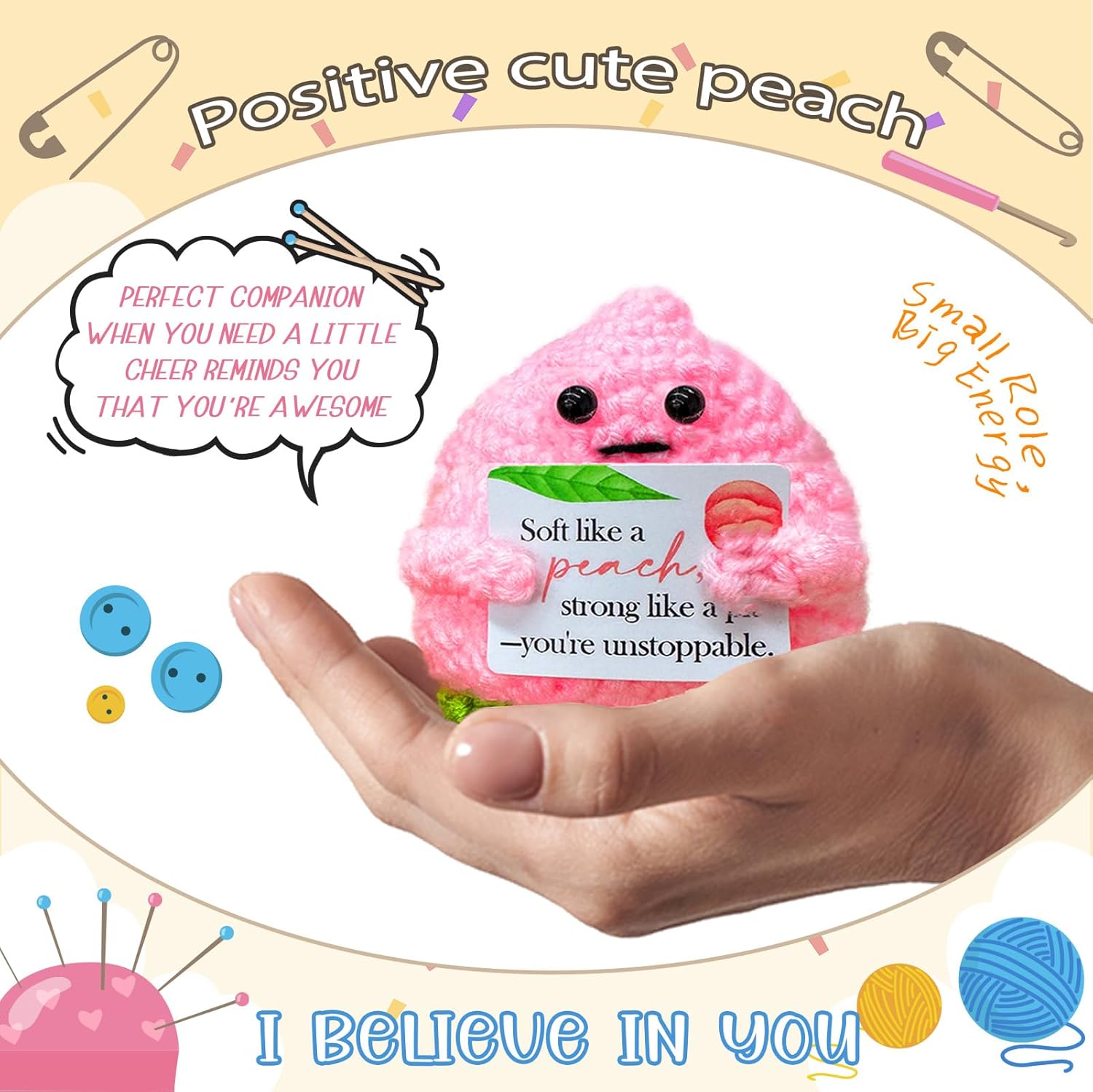 • 【Positive crochet companion】This optimistic doll always brings warm power.It always reminds us of the good side of life and helps us maintain hope and courage in difficult situations.This companionship makes the heart stronger.