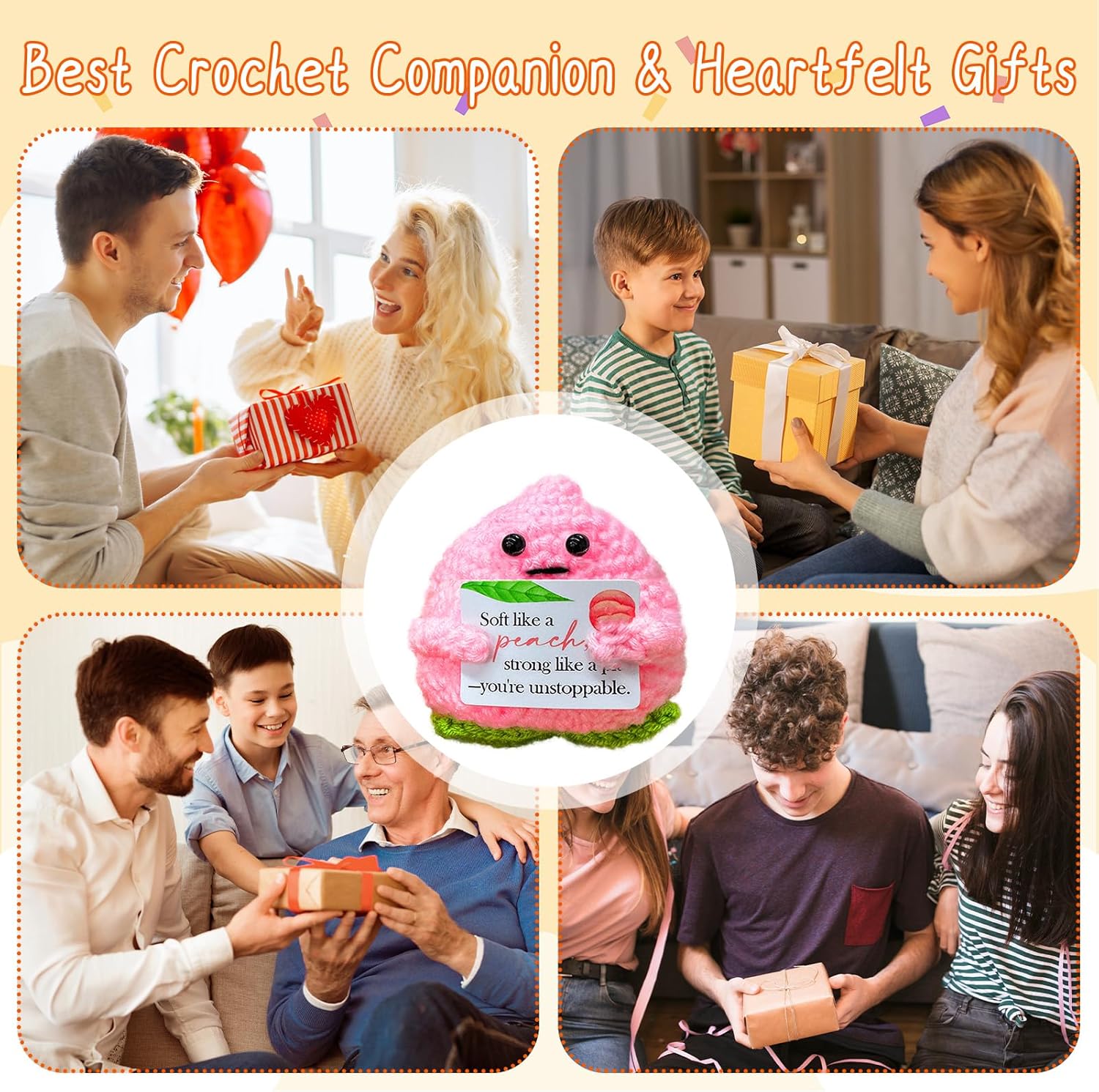Emotional Support Crochet Peach,Lovely Gift for Friends,Mom,Dad,Grandpa,Grandma,Colleagues,Classmates,Graduation Gift,Emotional Support Crochet,Home Office Decoration