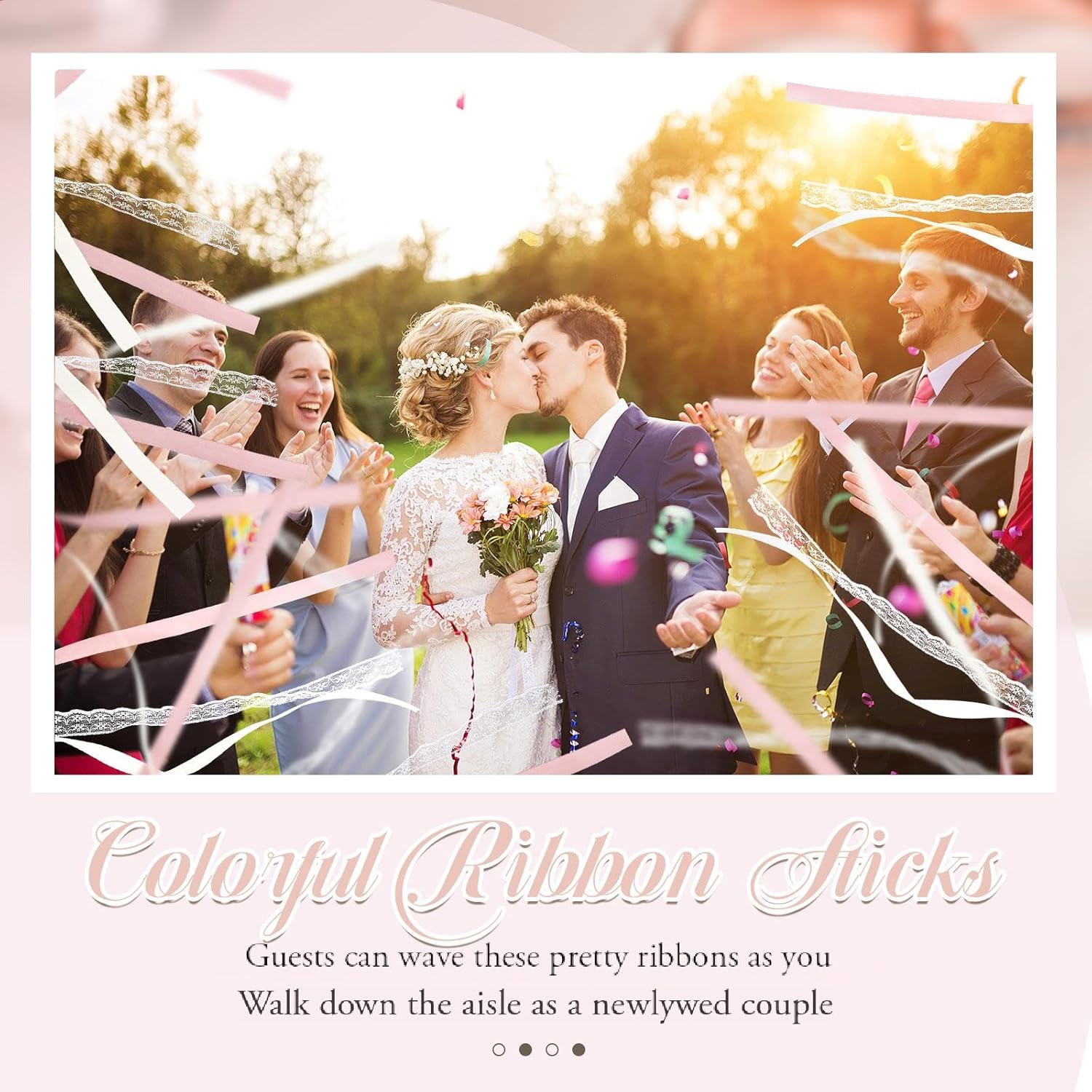 • Large Quantity: the package contains 150 pieces of wedding wands, with pink and beige ribbons, white lace, bells, enough for you to decorate an impressive wedding or party; You can also share them with your family and mates