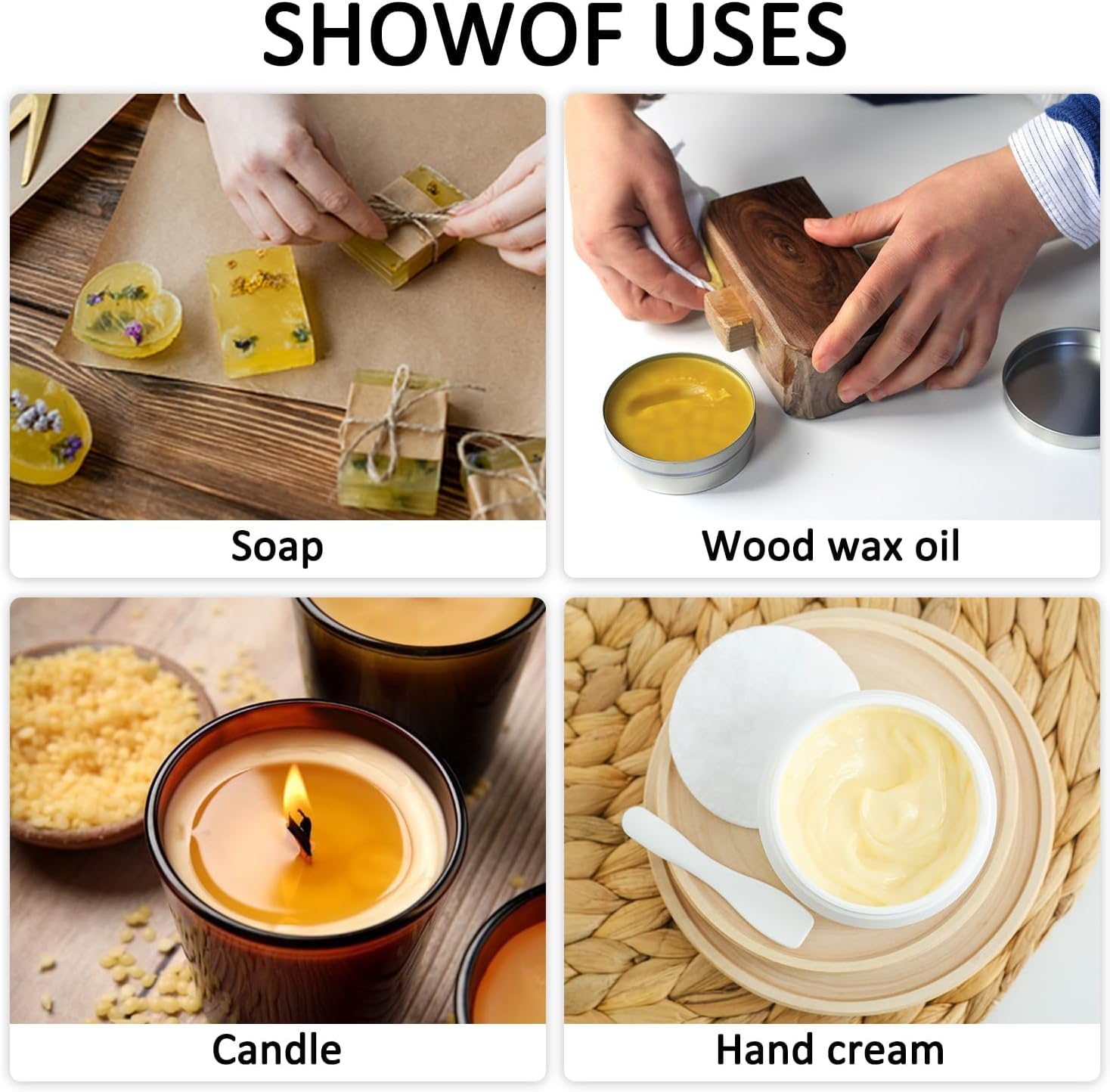 • Natural Beeswax: Made from natural beeswax, it is uniformly granular and easy to handle, perfect for handmade candles.