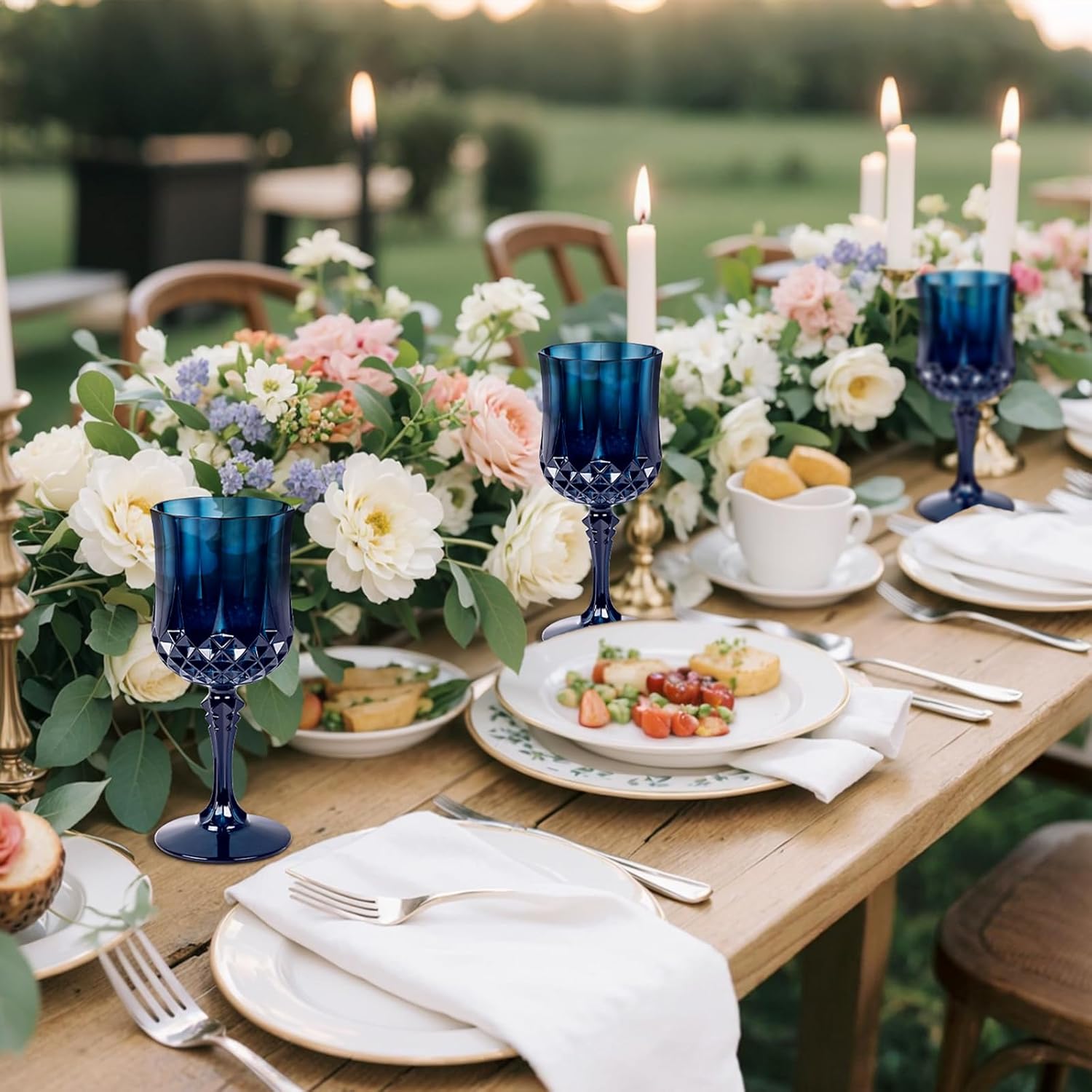 Ciaell 24PCS Blue Plastic Wine Glasses - 7 Oz Plastic Goblets for Party - Blue Vintage Drinking Glasses - Disposable Water Goblets Set for Wedding, Bar, Wine, Beer, Juice, Cocktail & Halloween