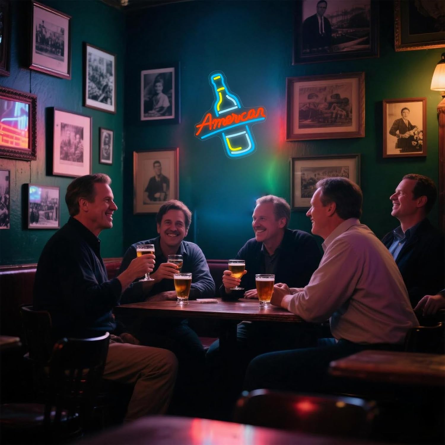 • 1️⃣ 🍾 Tavern Essential Anchor your garage bar or man cave with this vintage beer bottle neon. Authentic pub atmosphere for game days/BBQs .