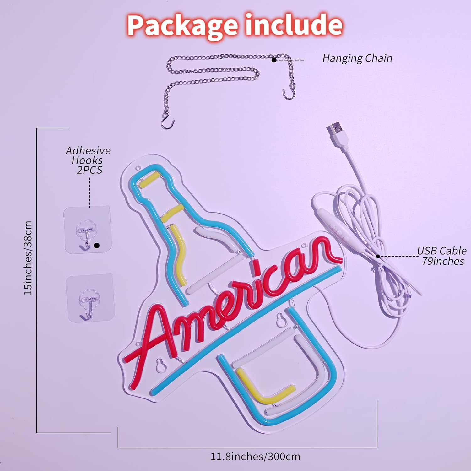 American Beer Neon Sign - Vintage Bottle LED Wall Light, Garage Bar Decor, Man Cave Lighting, Rustic Tavern Sign, USB Powered Neon for Game Room