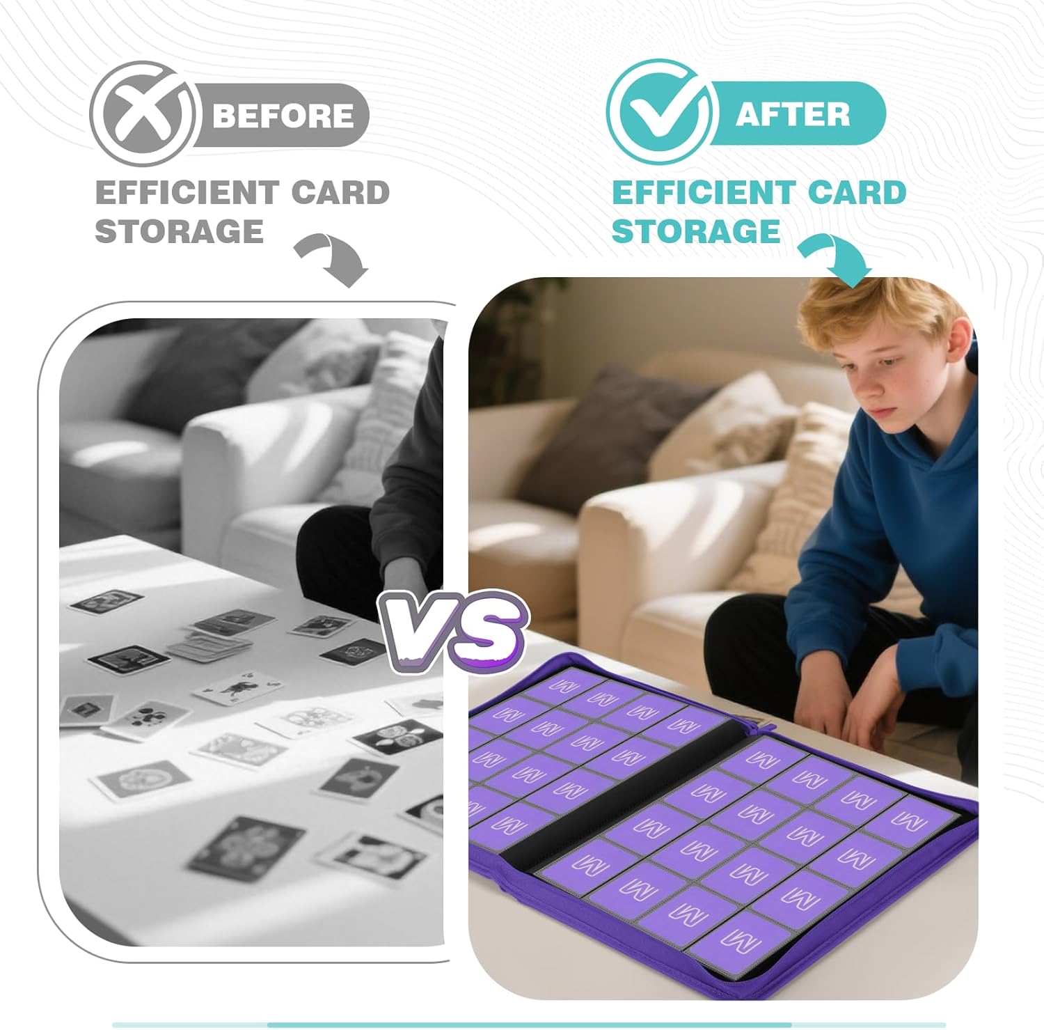 • 【ENSURING LONG-TERM STORAGE】 The card sleeves are made from acid-free, tear-resistant, and scratch-proof materials, ensuring durability for frequent use while keeping your cards securely organized and in excellent condition. The side loading pockets facilitate effortless insertion of cards and effectively prevent them from slipping out. Each page is reinforced with padding and designed to resist warping, making them perfect for displaying cards.Additionally, the card pages have an ultra-clear design, making display and viewing easy.