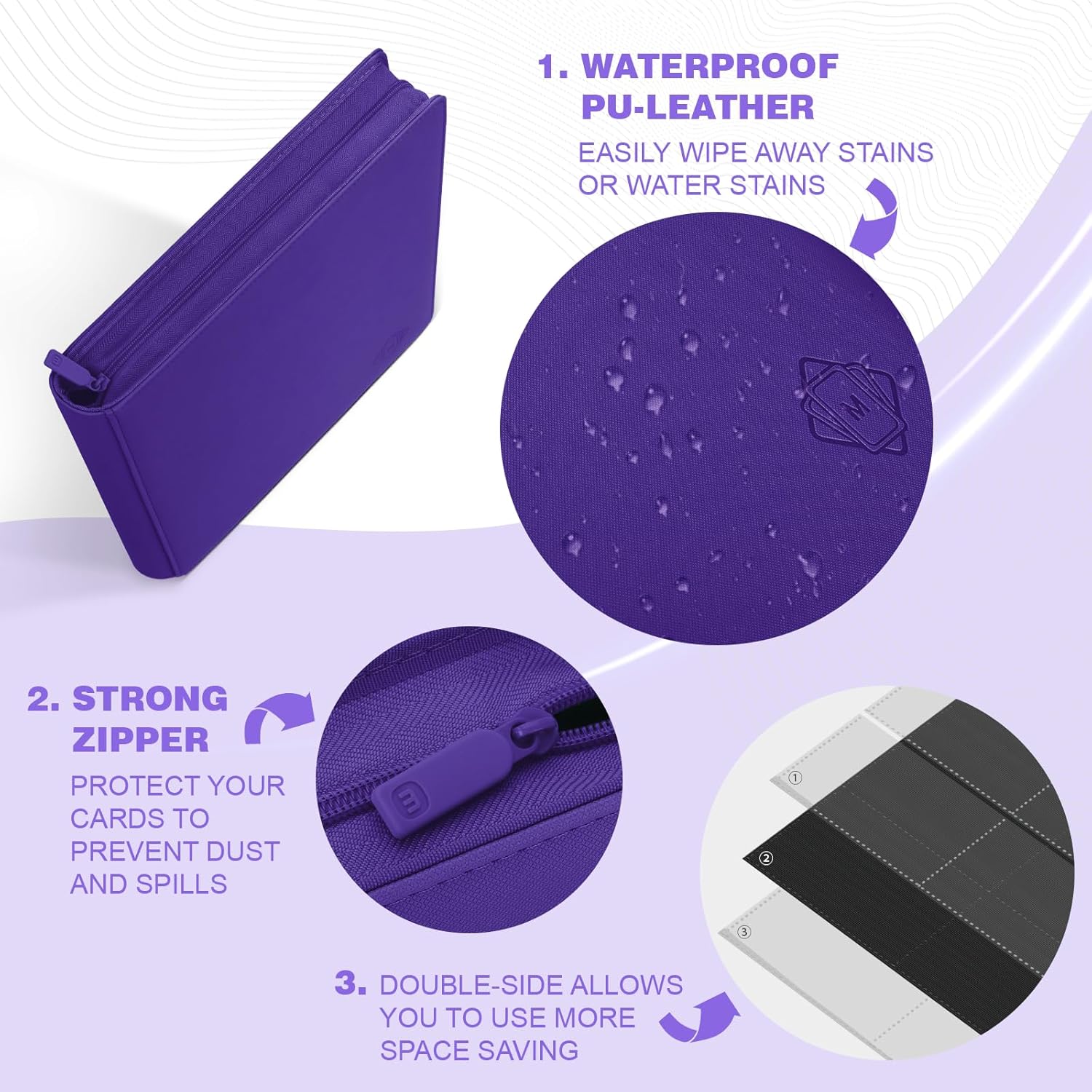 • 【PREMIUM QUALITY MATERIAL】 Our card binder is made of textured PU leather finish which is durable and comfortable. It more resistant to water and dust, Designed to keep card securely in place. Quality zipper keep cards protected and intact when not in use.The perfect way to safely browse your cards and never have to worry about your valuable cards being damaged. Offer different stylish colors to match your tastes.