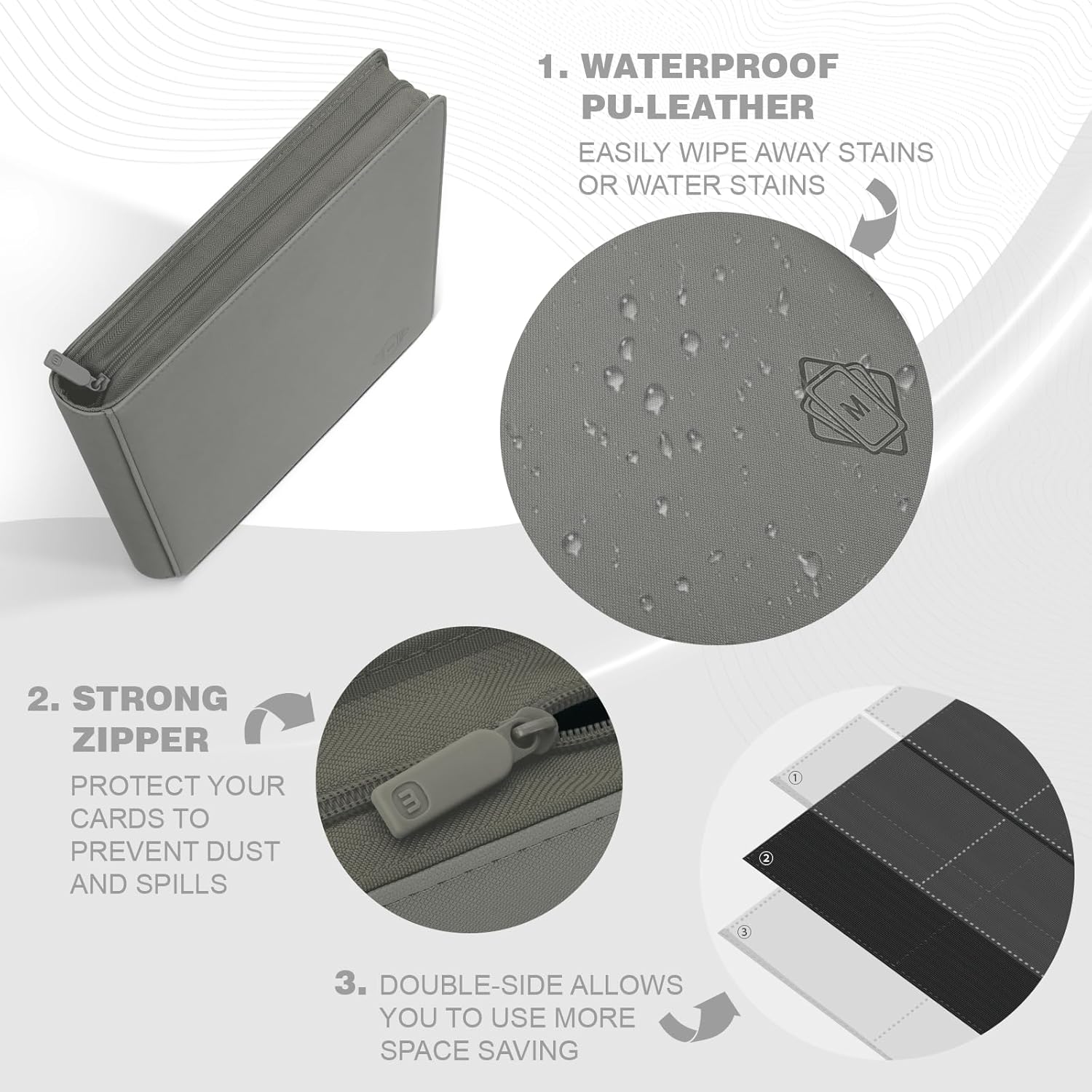 • 【PREMIUM QUALITY MATERIAL】 Our card binder is made of textured PU leather finish which is durable and comfortable. It more resistant to water and dust, Designed to keep card securely in place. Quality zipper keep cards protected and intact when not in use.The perfect way to safely browse your cards and never have to worry about your valuable cards being damaged. Offer different stylish colors to match your tastes.