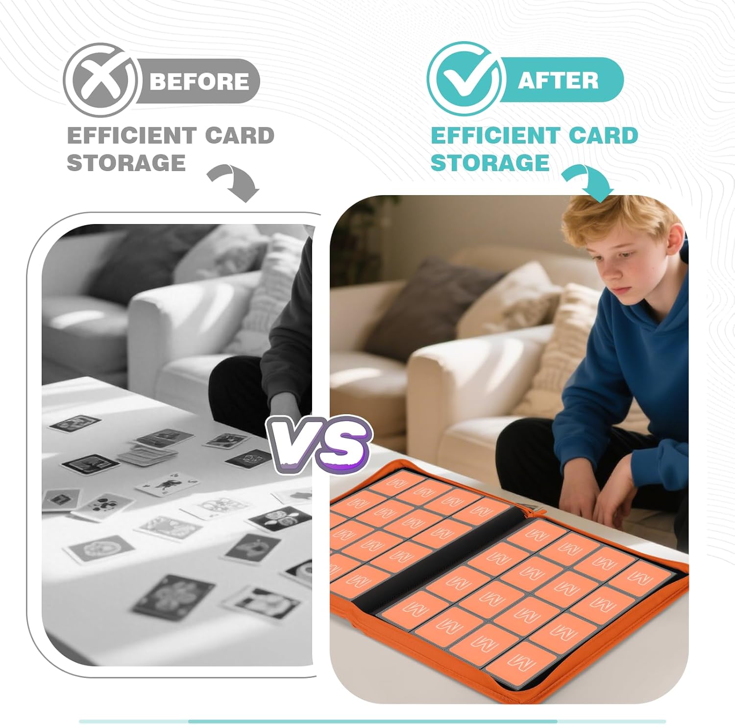 • 【LARGE CAPACITY 】It features an interior suede lining, providing a luxurious touch and ensuring durability.Our card binder holds up to 1024 trading cards with 16 pockets per page,both sides can hold cards,totalling 32 pages.Large storage capacity to meet your card collection needs ,keep all your cards organised.