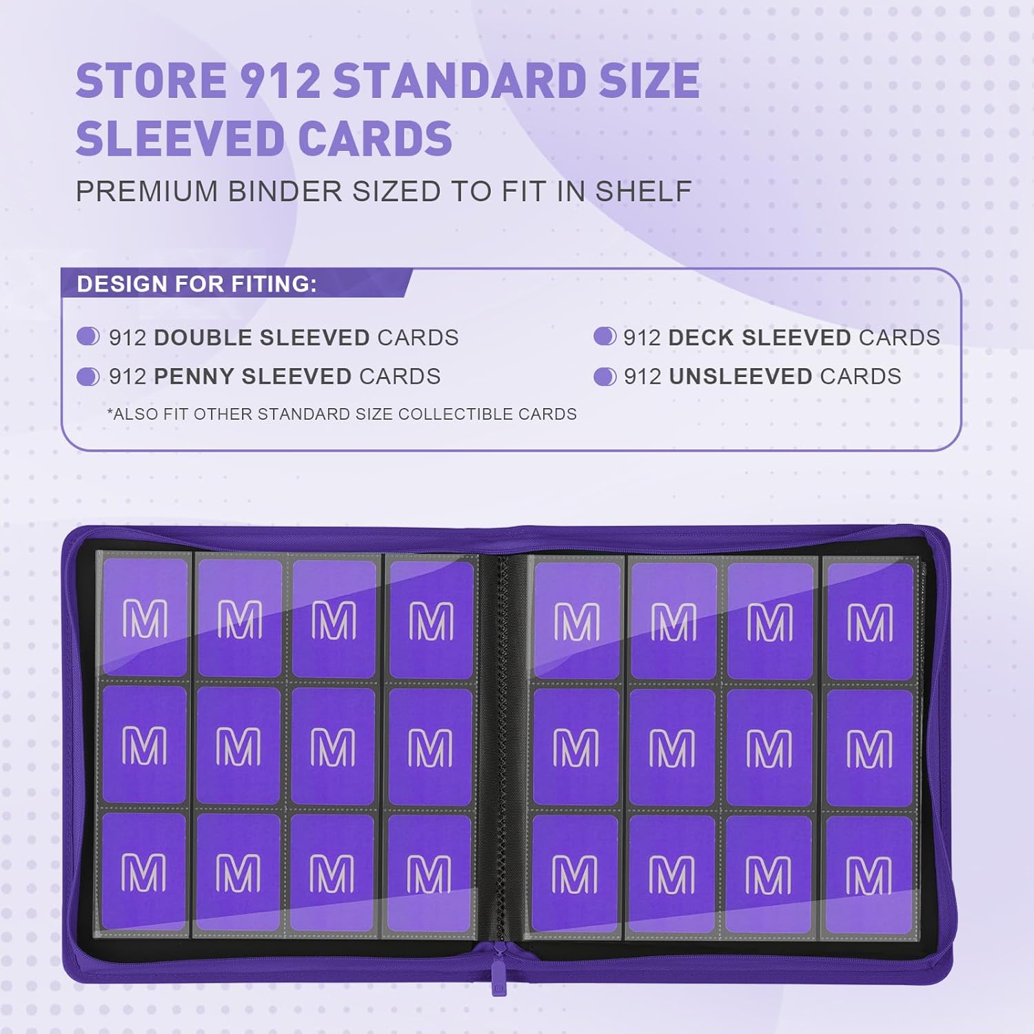 Premium Card Binder 12 Pocket for 720 Pockets Trading Card Binder, PU Zipper Card Collection Album, Sturdy Side-Loading Card Book Holder for MTG, TCG, Game Cards, Sports Cards