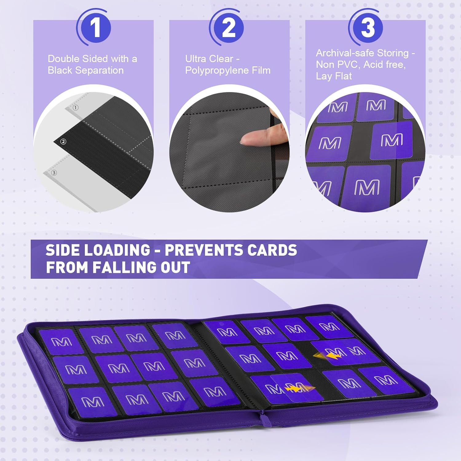 • 【LARGE CAPACITY 】Trading card binder,Holds 720 cards with 30 double-sided 12-pocket pages bound to the spine.this 12 pocket card binder makes your cards tucked away safely and keeps them in mint condition and organized.Making it ideal for Playing cards, baseball, or any trading card collection. With the ability to optimize your collection, this binder is a must-have for any card enthusiast. Pocket Size: 2.7" x 3.7". Well designed to fit sleeved cards for double protection.