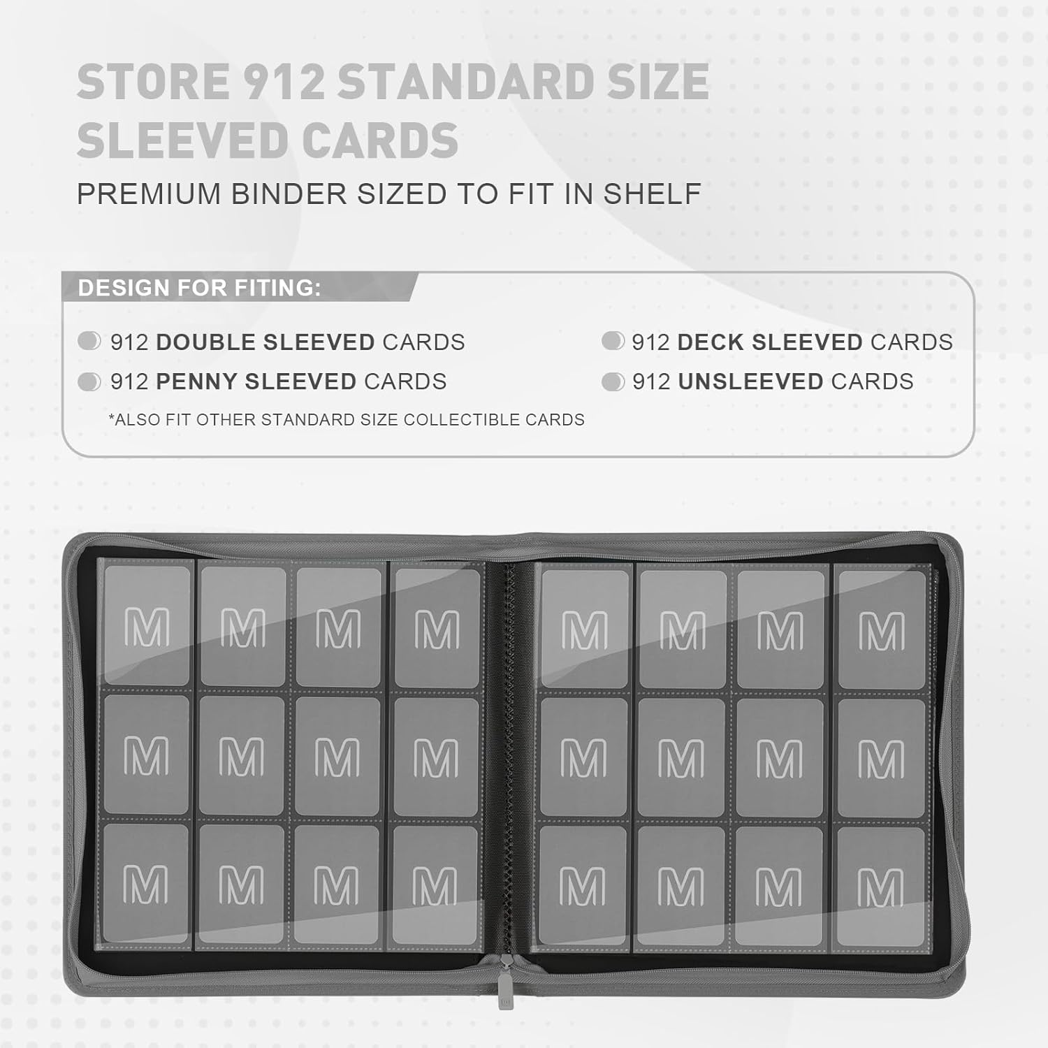 Premium Card Binder 12 Pocket for 720 Pockets Trading Card Binder, PU Zipper Card Collection Album, Sturdy Side-Loading Card Book Holder for MTG, TCG, Game Cards, Sports Cards