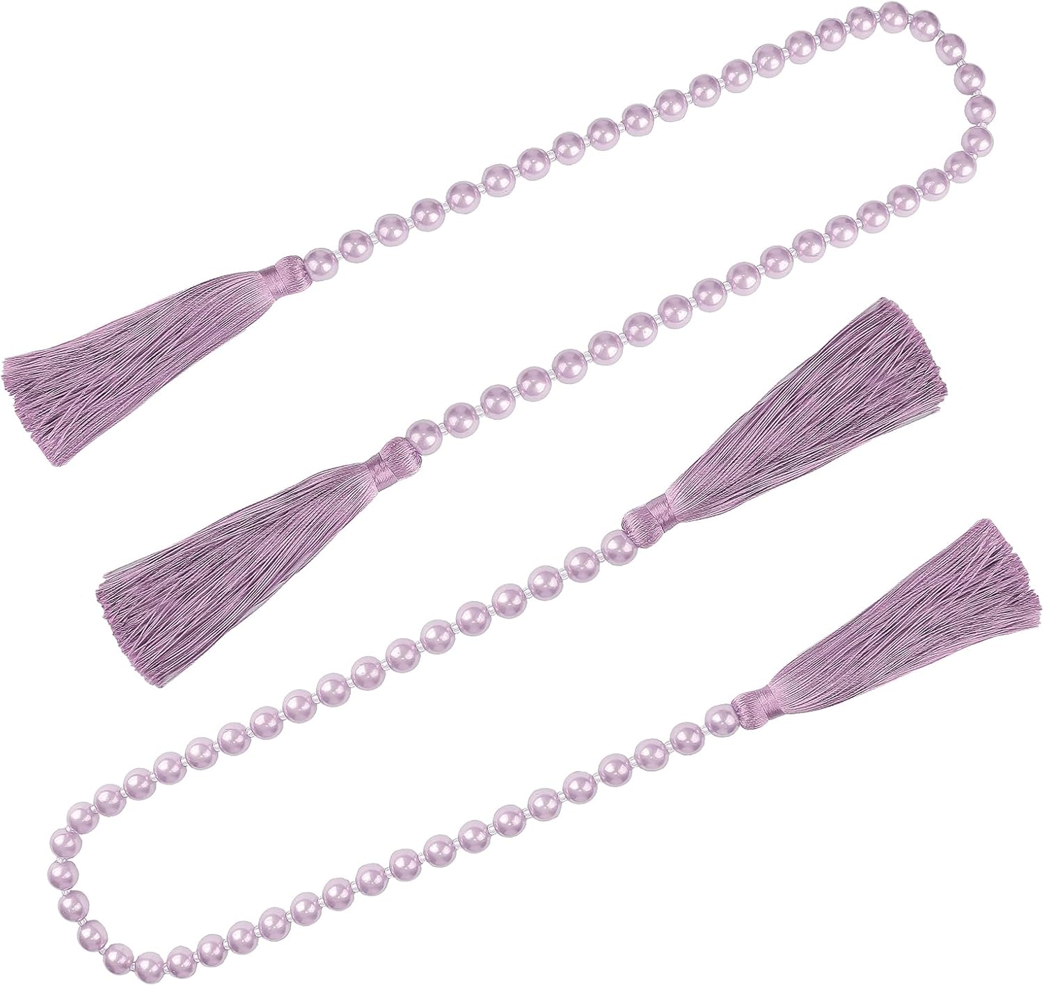 Fenghuangwu 34 Inch Pearl Glass Bead Garland with Tassels - Elegant Boho Table Decor, Fringe Wall Hanging for Wedding, Party, Farmhouse Rustic Prayer Bead Home Decoration(2 Pack,Purple)