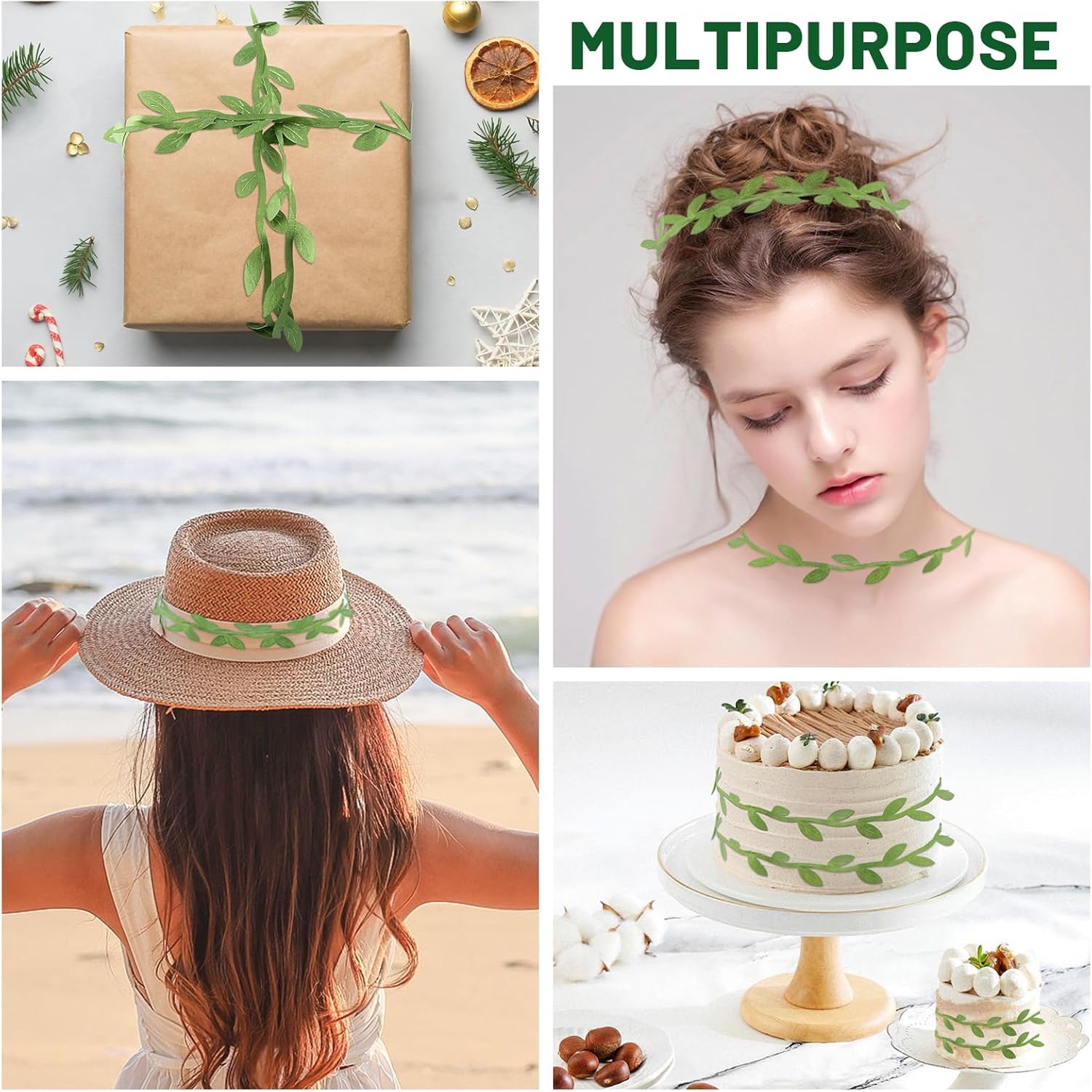 • OLIVE GREEN LEAVES LEAF RIBBON:The Olive Green Leaf Ribbon Has A Clever Design That Mimics The Lush Foliage Of The Olive Tree,The Rich Emerald Green Hue And Realistic Texture Looks Like Real Ivy, Bringing The Beauty Of Nature Into Your Hands And Adding A Natural Vibrancy To Your Parties And Artwork.