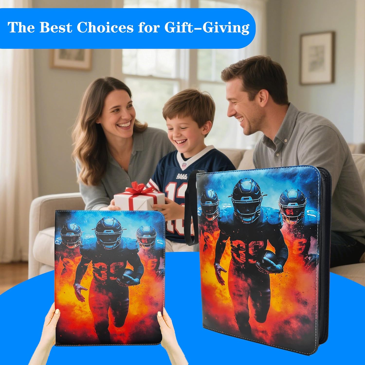 • 🏈Gift for Card Collectors: The trading card binder has a bright and colorful cover design, The waterproof leather surface brings you a different texture experience,the iconic graphic design is loved by other collectors. It's an ideal gift for cards collectors, kids and friends.