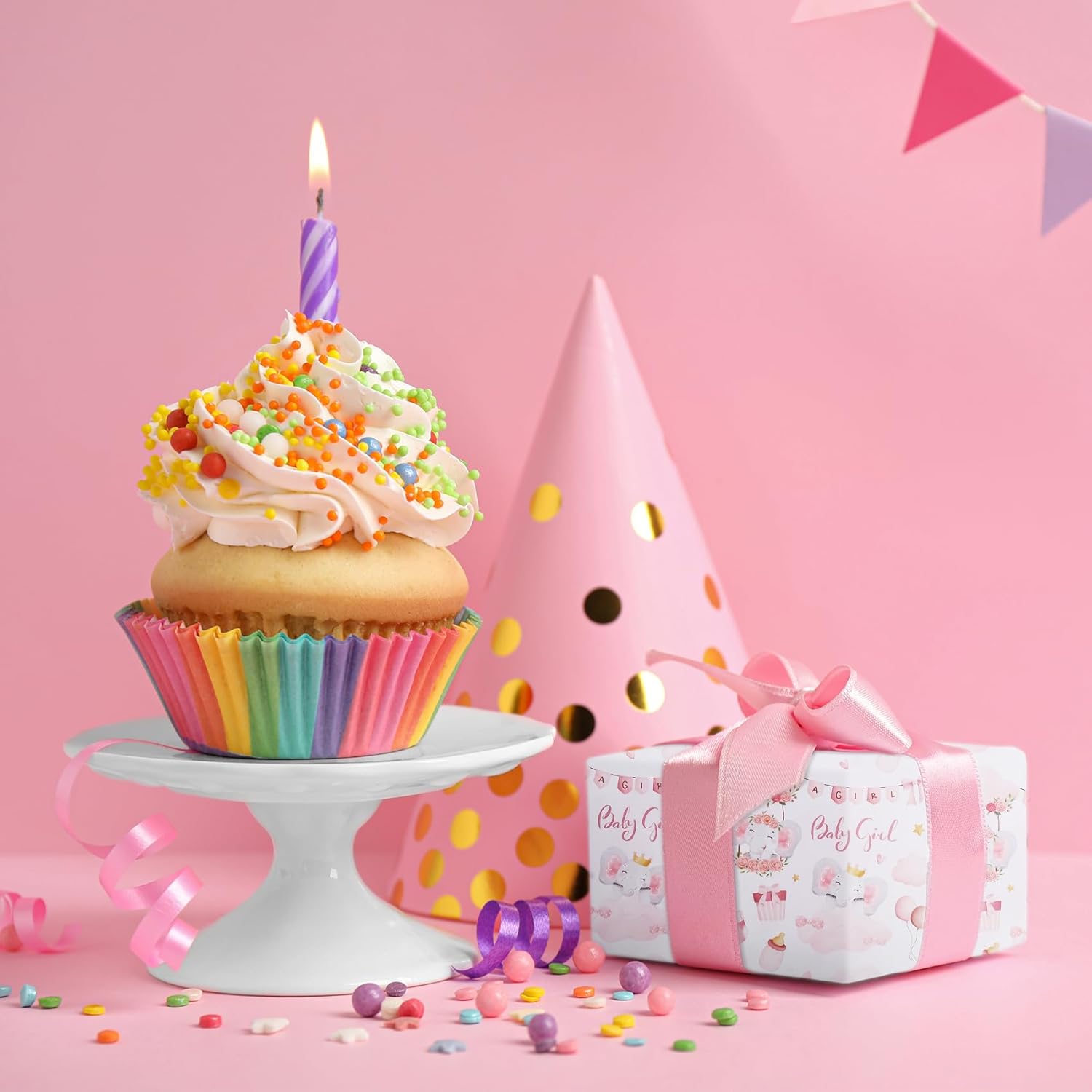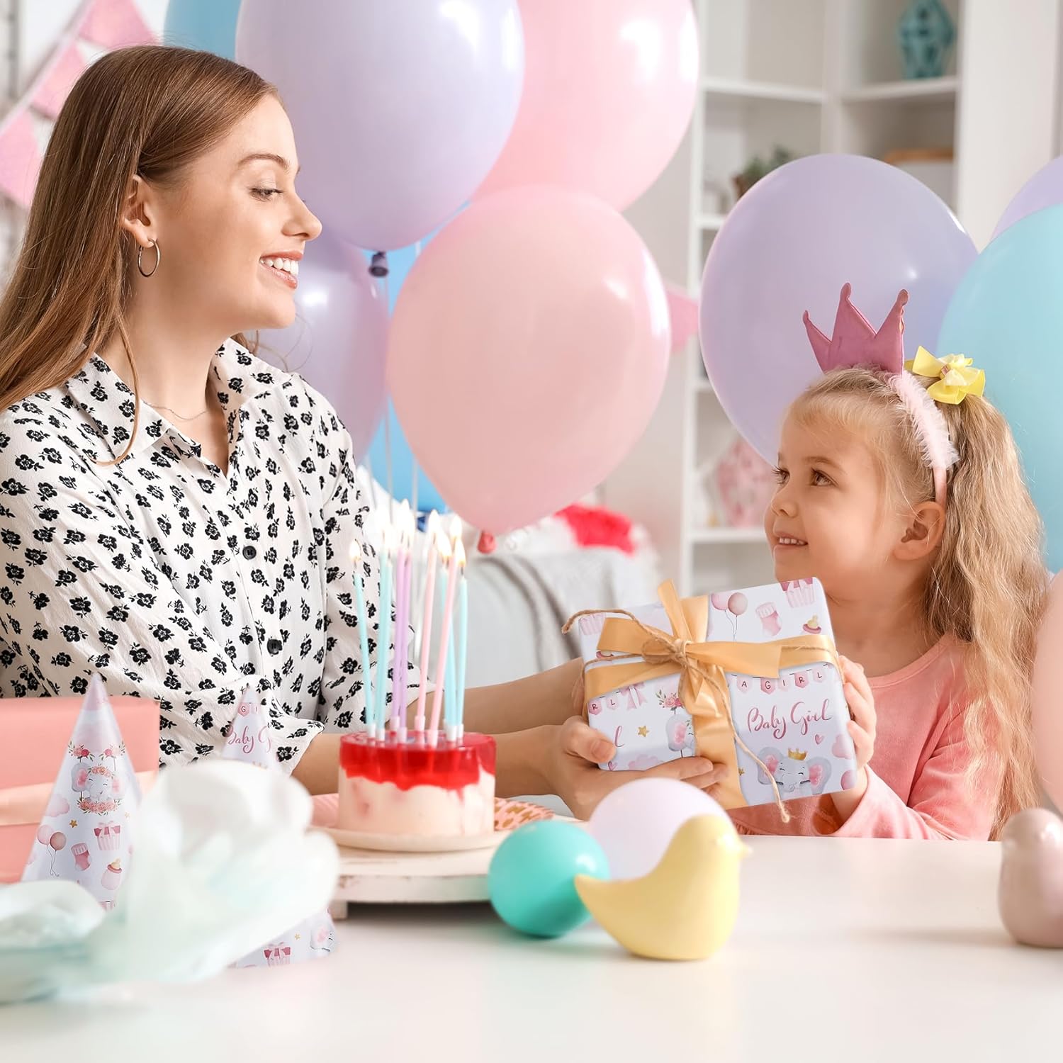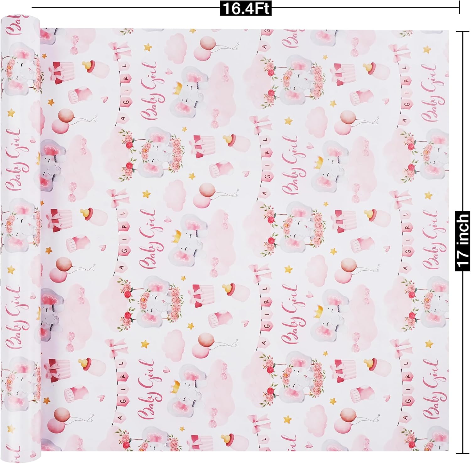 • Cute Baby Shower Design: The baby girl wrapping paper features charming pink elephant and cloud patterns, making it perfect for any baby shower celebration or birthday party for girls