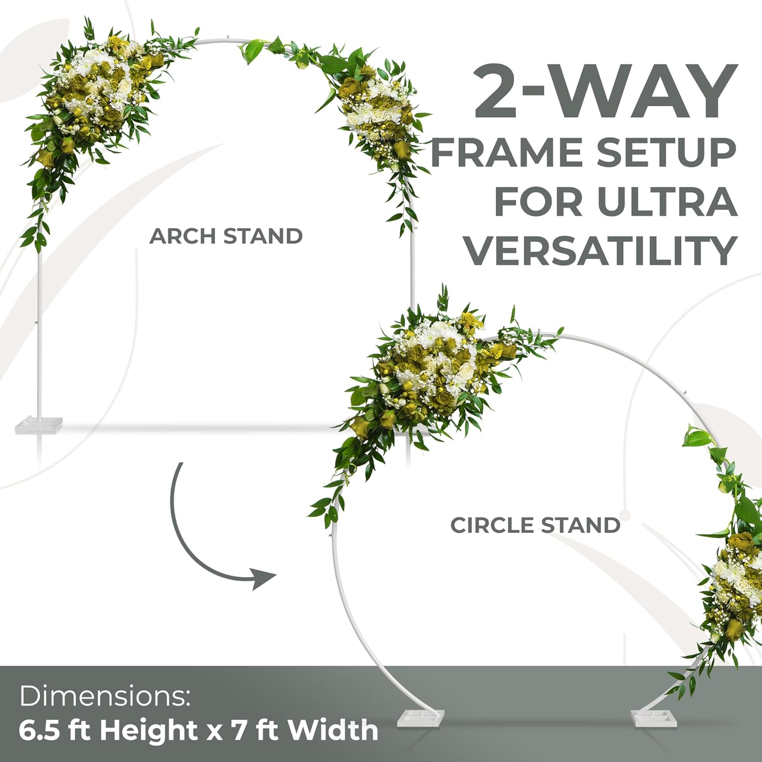 VERDEVISTA Convertible 6.5 FT Round Backdrop Stand - Heavy Duty Balloon Arch Stand with 2 Waterbags - Multiuse Photo Backdrop Arch, White Circle Ring Balloon Arch Frame for Wedding Baby Shower & More