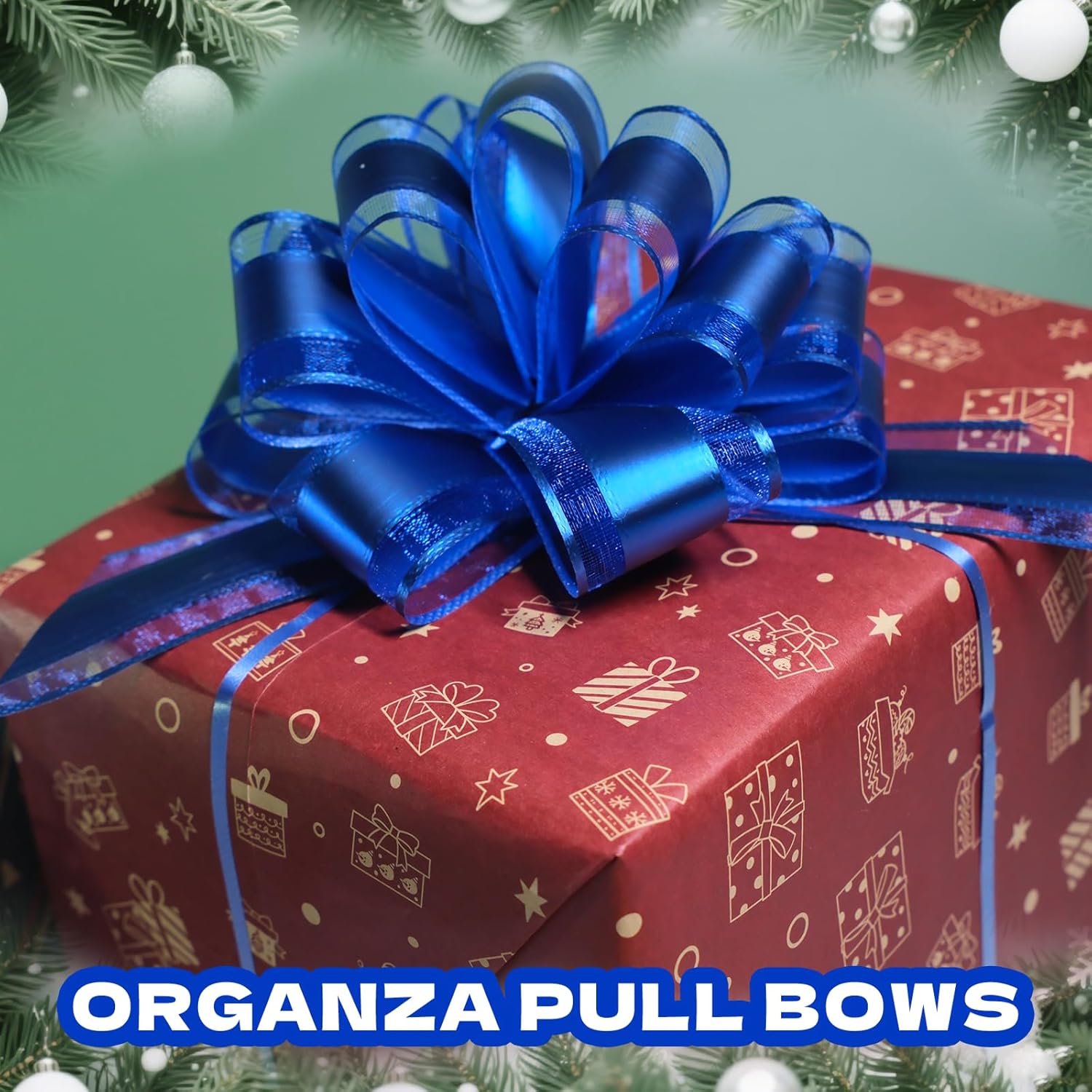 6 Pcs 6 Inch Blue Pull Bows, Perfect for Gift Wrapping, Weddings, Party Decorations, Crafts Easy-to-Use Pull Bows for Gifts and Events