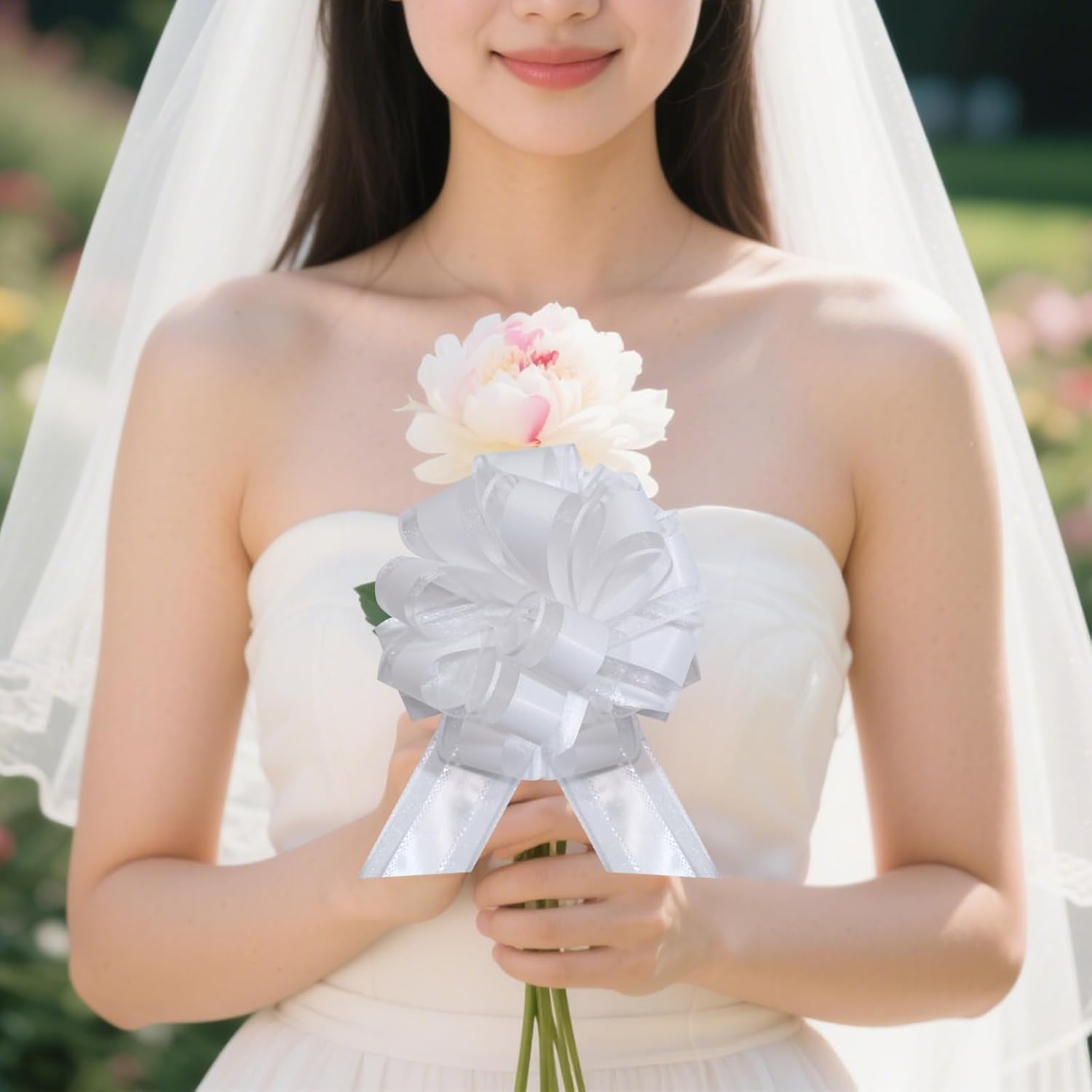• Versatile Decoration: These white ribbon pull bows are ideal for weddings, birthday parties, holiday celebrations, gift wrapping, DIY crafts, and other special events, elevating the atmosphere with sophistication.