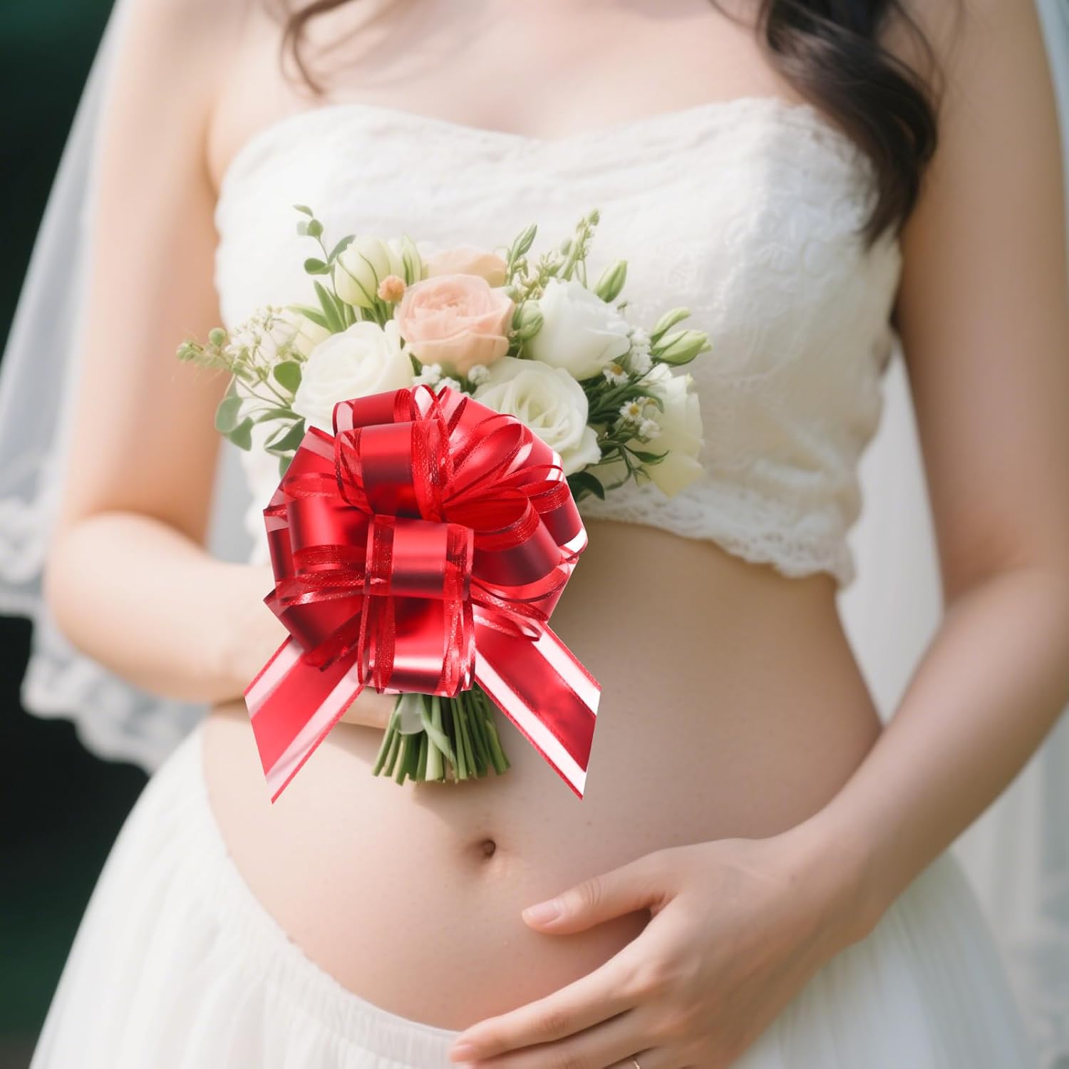 6 Pcs 6 Inch Red Pull Bows, Perfect for Gift Wrapping, Weddings, Party Decorations, Crafts Easy-to-Use Pull Bows for Gifts and Events