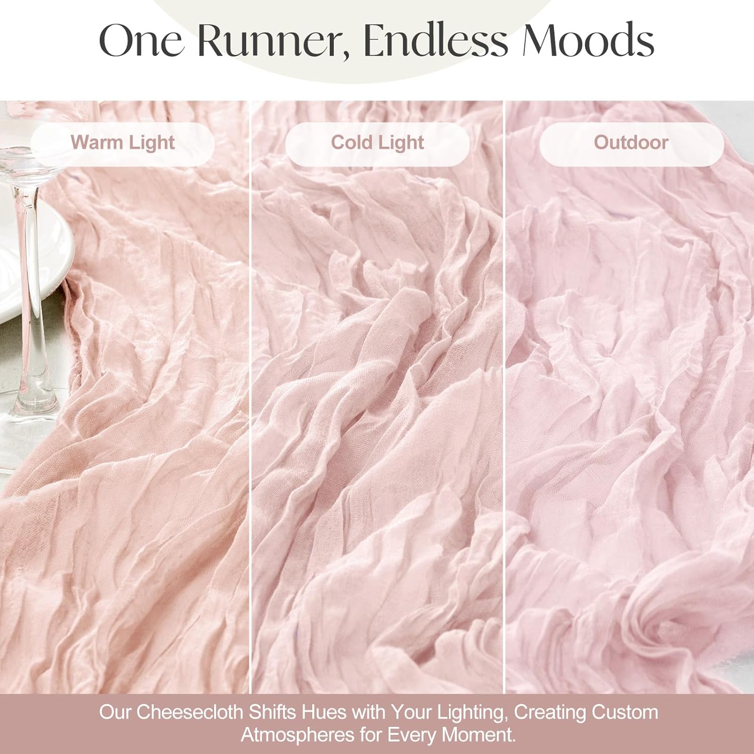 • VERSATILE FOR EVERY OCCASION---Whether decorating a boho wedding arch, a cozy holiday buffet, or an outdoor picnic, this cheesecloth table runner adapts seamlessly. Drape this table runner over banquet tables, fireplace mantels, or dessert bars to create a romantic, flowy vibe. Neutral tones and sheer finishes blend flawlessly with rustic, vintage, or modern themes.