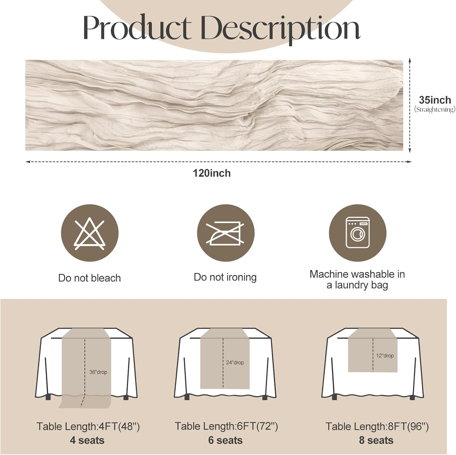 • ULTRA-SOFT CHEESECLOTH FABRIC---Crafted from premium, breathable cheesecloth, this table runner delivers a luxuriously soft texture that instantly elevates table decor. Its naturally wrinkled design adds effortless rustic charm—no ironing required! Perfect for delicate celebrations like bridal showers, baby shower decorations, weddings, birthdays, or holiday gatherings (Easter, Thanksgiving, Christmas).