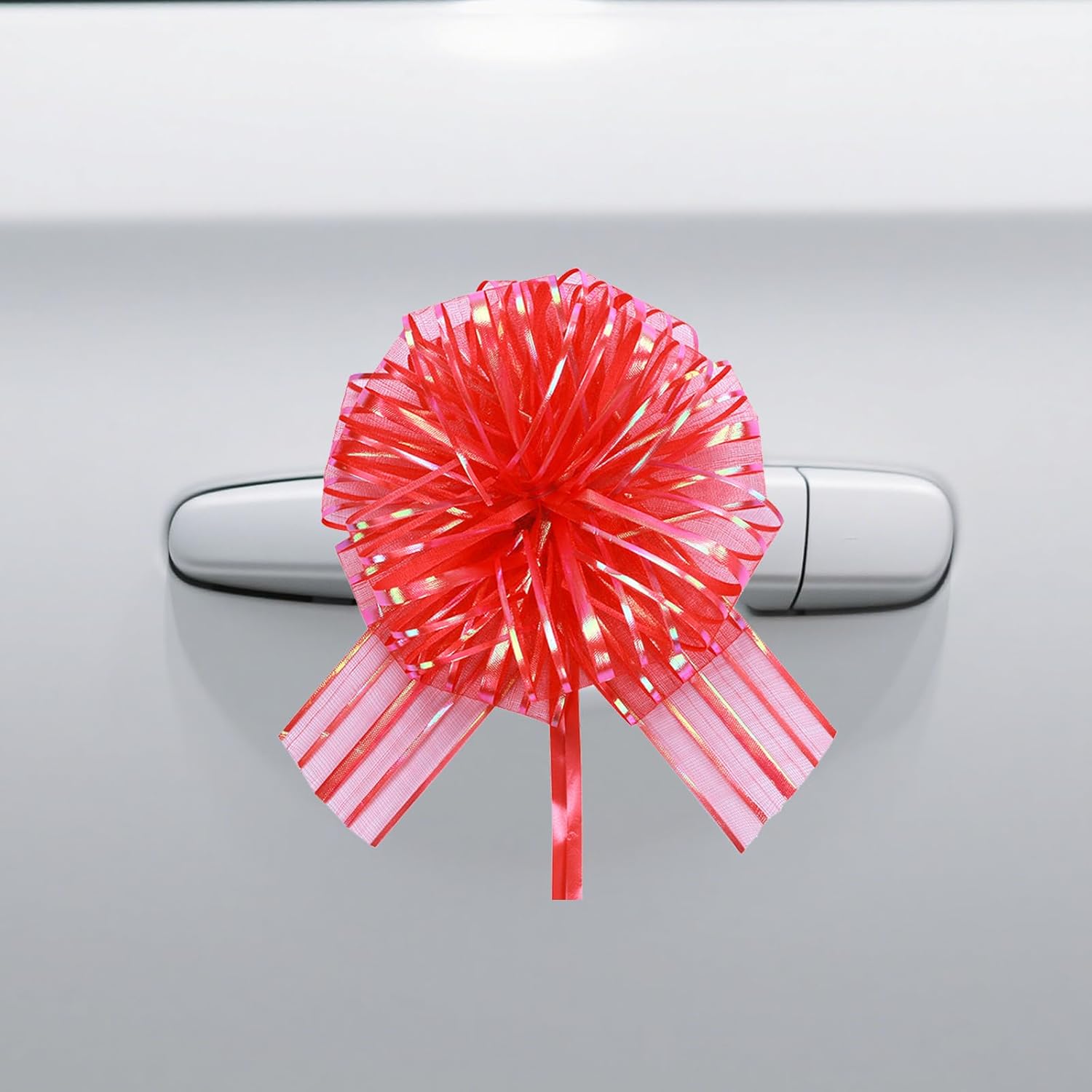 6 Pcs 6 Inch Large Organza Pull Bow Ribbon – Elegant Gift Bows for Wedding Decorations, Christmas Wrapping, Birthday Parties, Car Decor, Gift Baskets, and Valentine's Day Packaging(Red)