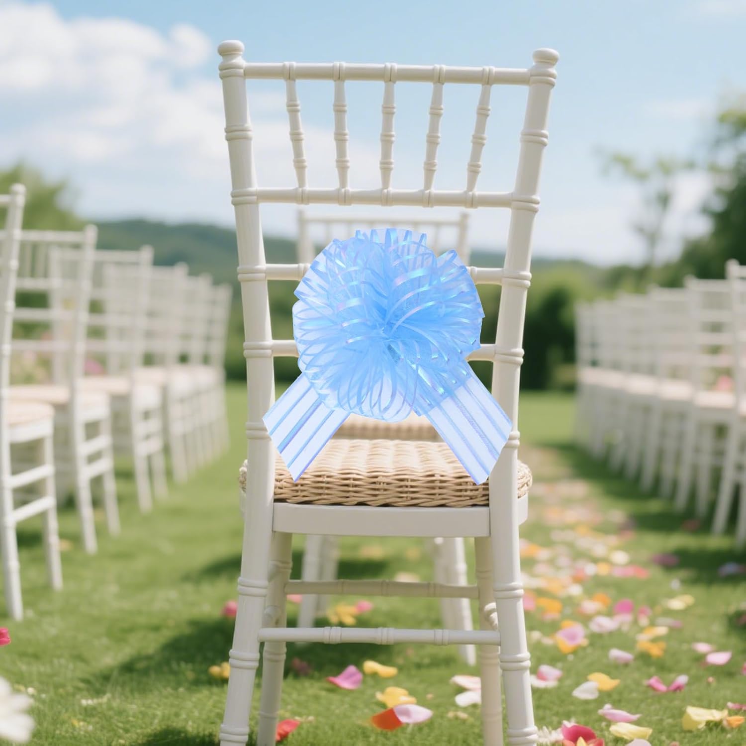 6 Pcs 6 Inch Large Organza Pull Bow Ribbon – Elegant Gift Bows for Wedding Decorations, Christmas Wrapping, Birthday Parties, Car Decor, Gift Baskets, and Valentine's Day Packaging(Light Blue)