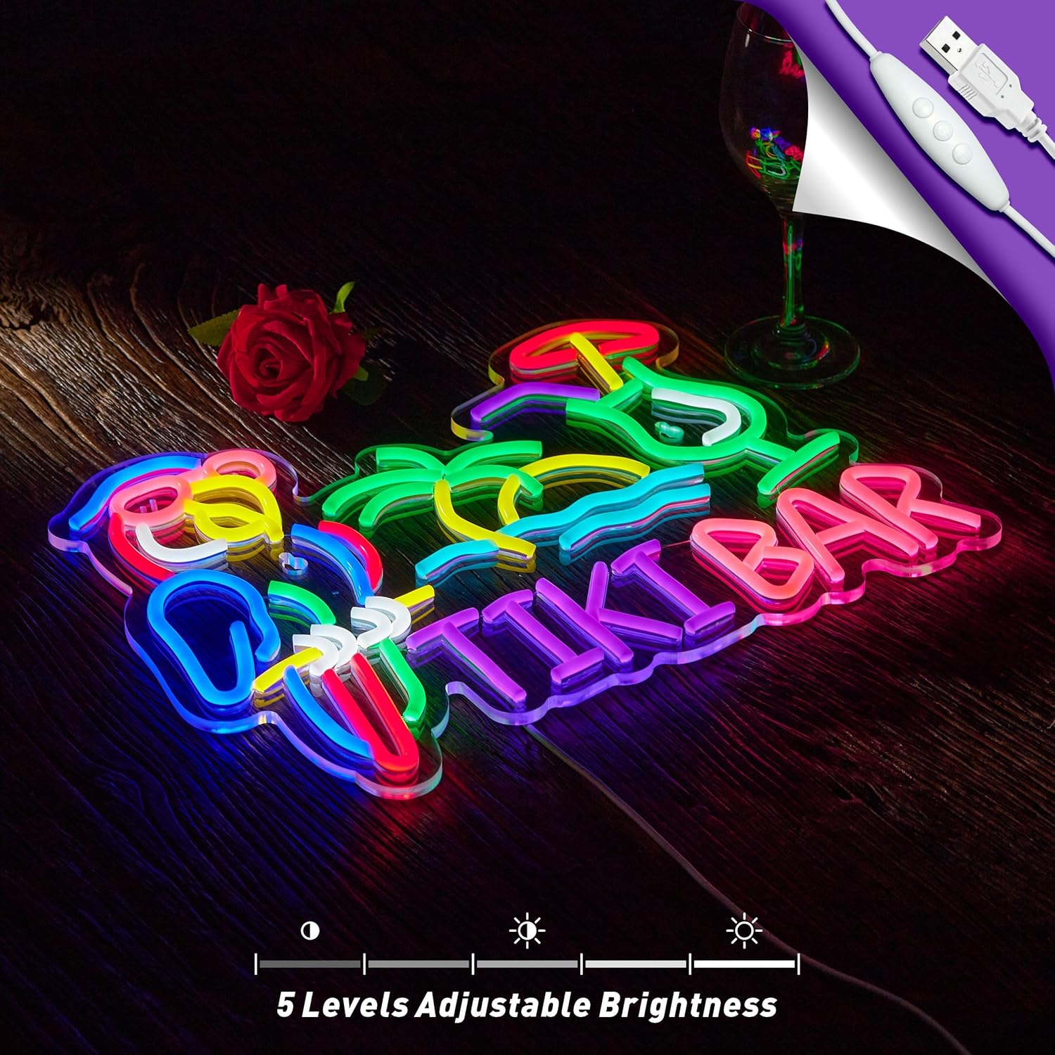 • 【Cool design】Creative sunglasses parrot palm tree tiki bar neon sign. Made of soft silicon LED strip lights and clear acrylic board. Well made and packed.