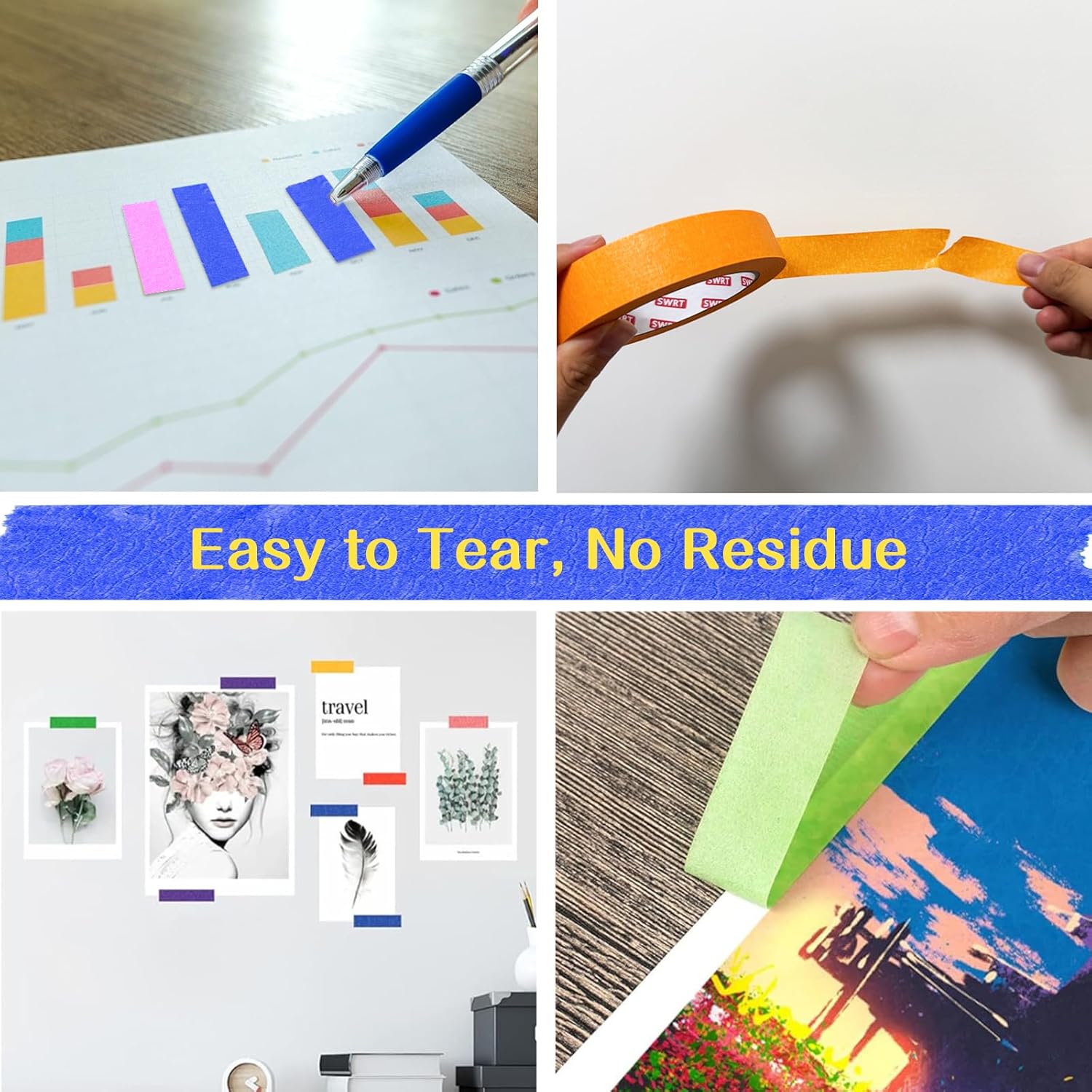 • Clean Removal Without Sticky Residue: Leaves surfaces clean for up to 14 days after use. Perfect for temporary markings on walls, floors, and art boards without damaging paint or leaving glue behind