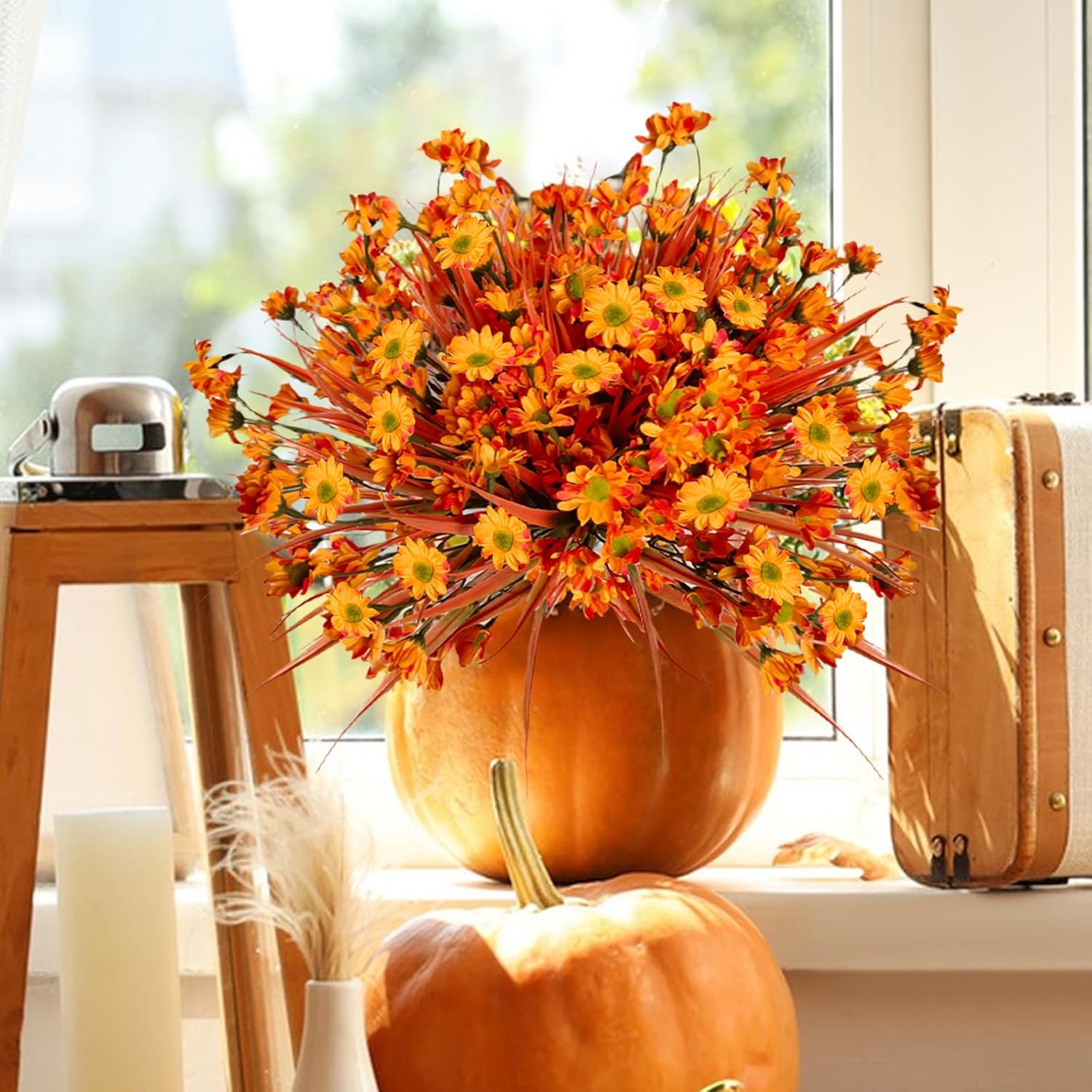 • Fall Decorations for home:These artificial flowers shine not just as porch decor, but as fall centerpieces. Perfect for home, yard, front porch, backyard, garden, balcony, windowsill, and terrace. Essential for creating spellbinding Halloween displays and heartwarming Thanksgiving arrangements!