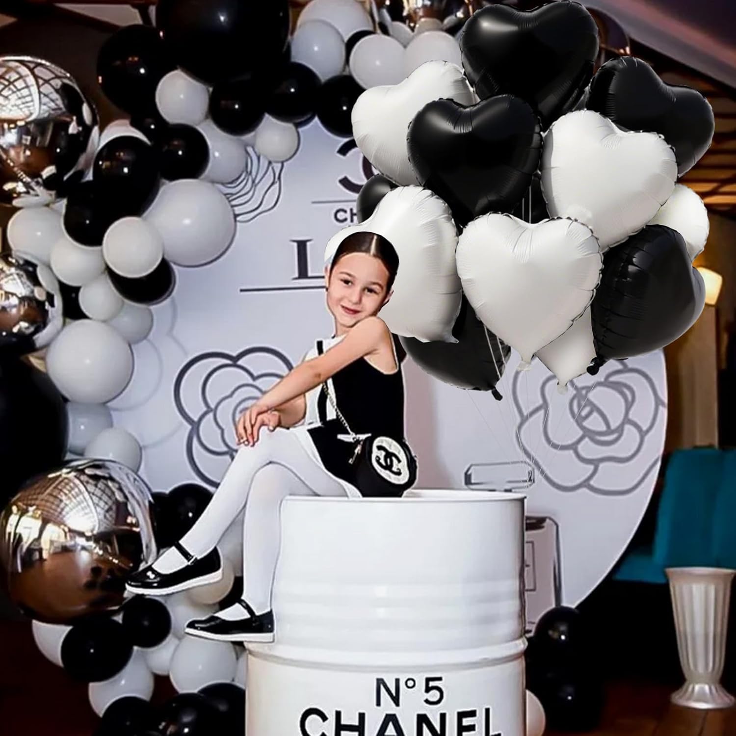 TONIFUL 15Pcs 18 Inch Black White Heart Balloons Valentine’s Day Heart Shape Foil Mylar Balloons Decoration for Romantic Valentine's Day Wedding Bridal Shower Anniversary Engagement Party Supplies
