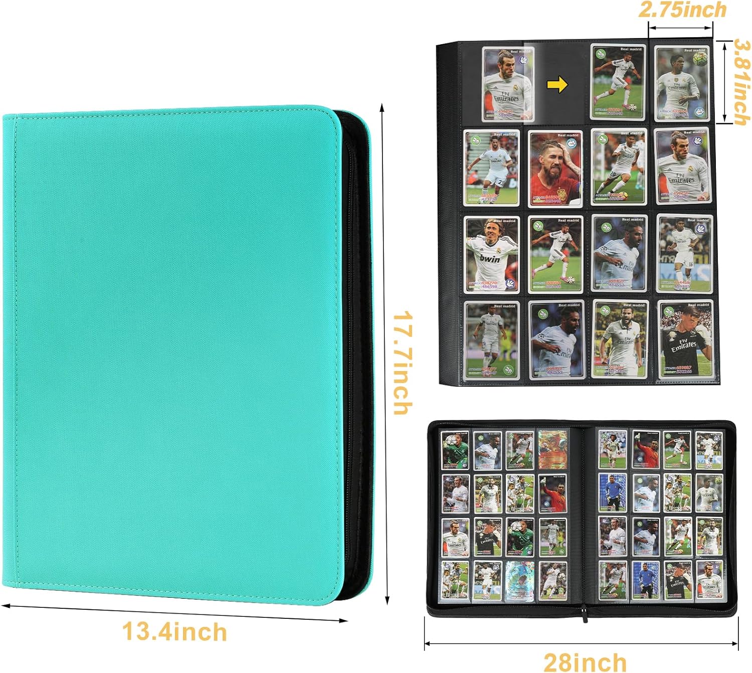 • 【Perfect Build】 Holds 1024 trading cards with 32 pages 16-pocket bound to the spine, providing plenty of space to get all your cards organized.binder built without rings. No more worrying about rings damaging your cards, along with a zippered closure for extra protection.Side Loading designed to prevent cards from easily falling out.
