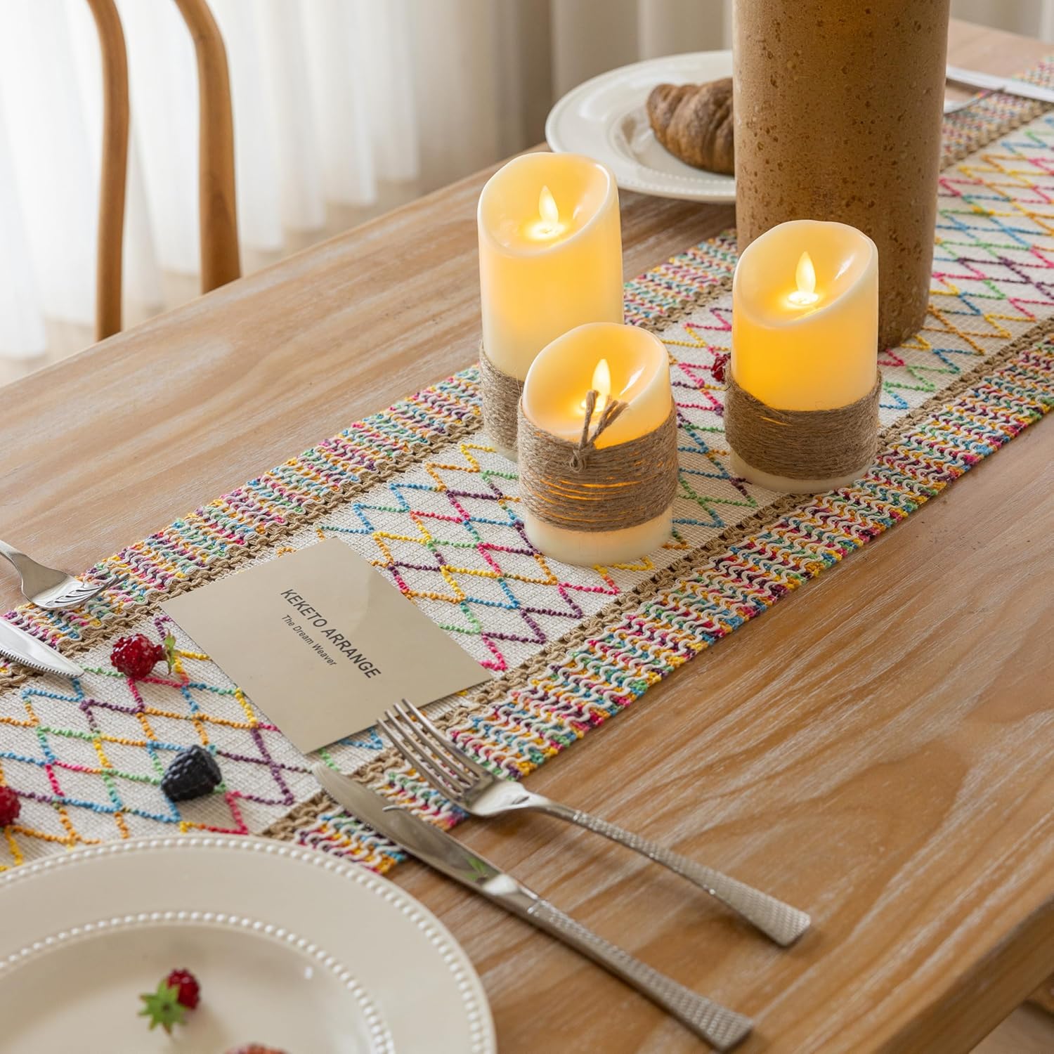 Keketo Boho Table Runner Colorful for Home Decor 12x72 Inches Farmhouse Macrame Burlap Jute Rustic Dining Kitchen Centerpiece Bohemian Decor French Country Baby Bridal Shower Decorations