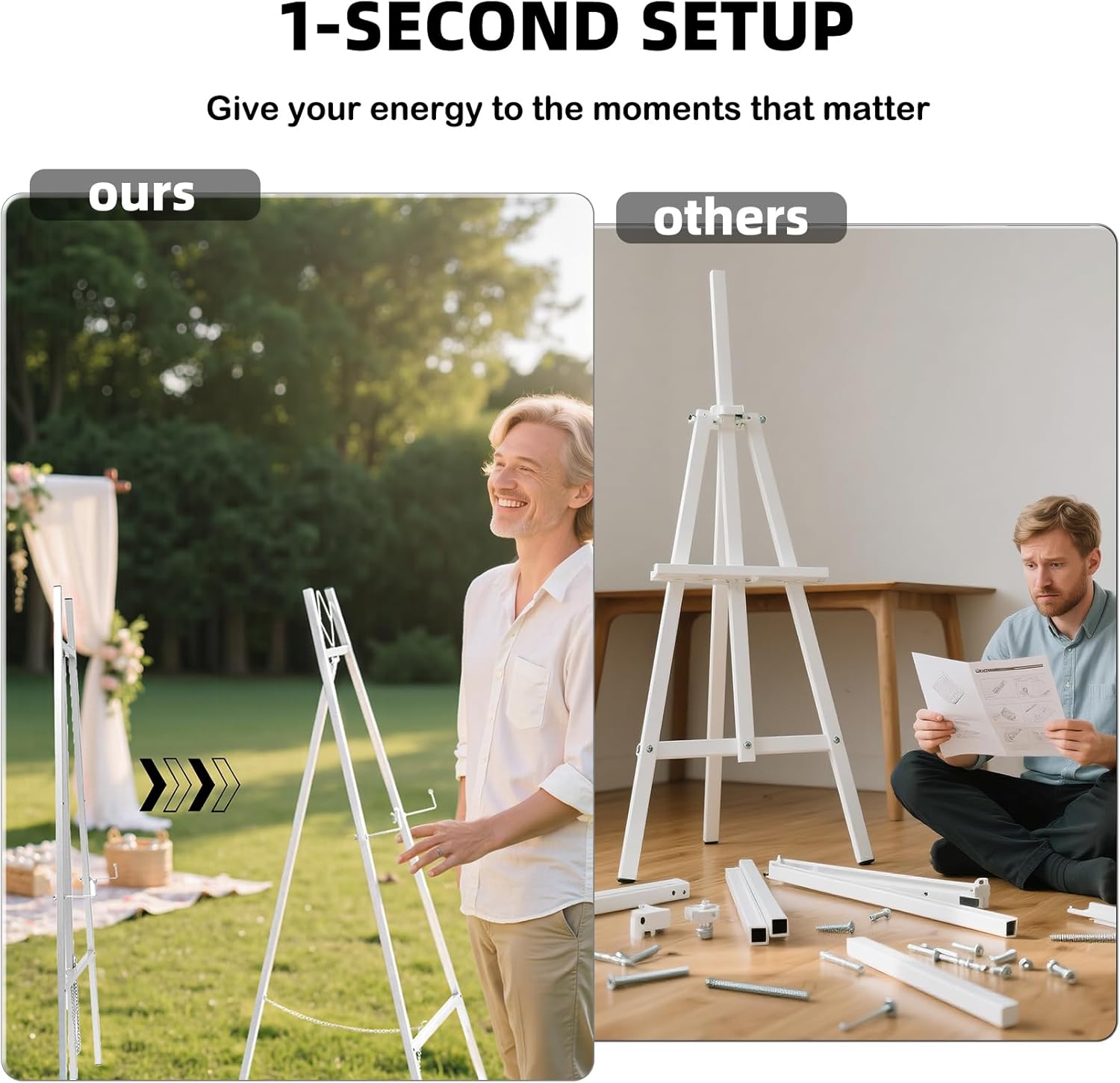 • 【CLEAN & ELEGANT DESIGN】Finished in a smooth white powder coating, this easel offers a bright, refined aesthetic that complements weddings, art galleries, and elegant gatherings without distracting from your display.